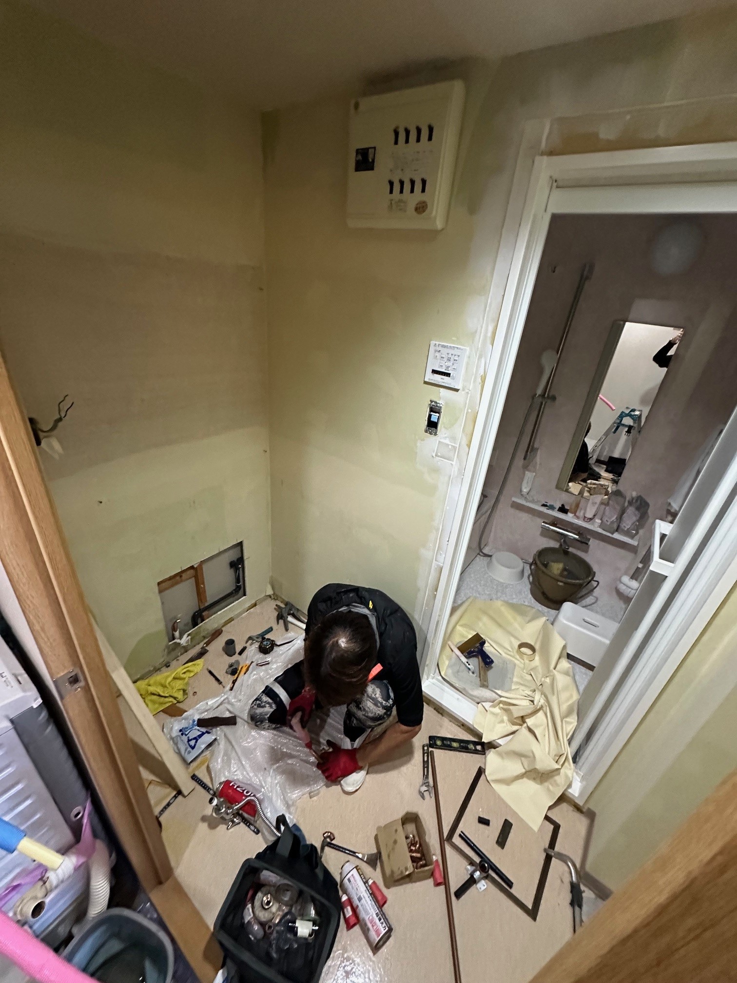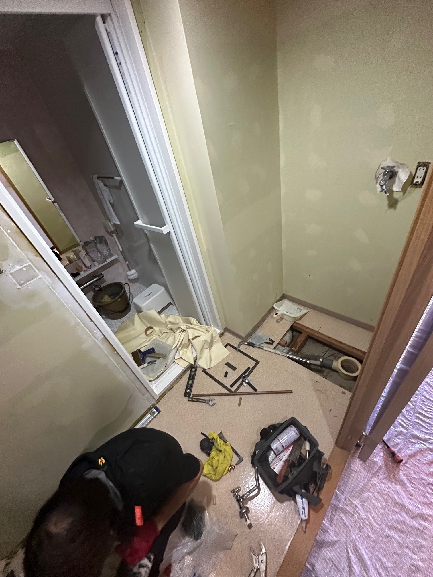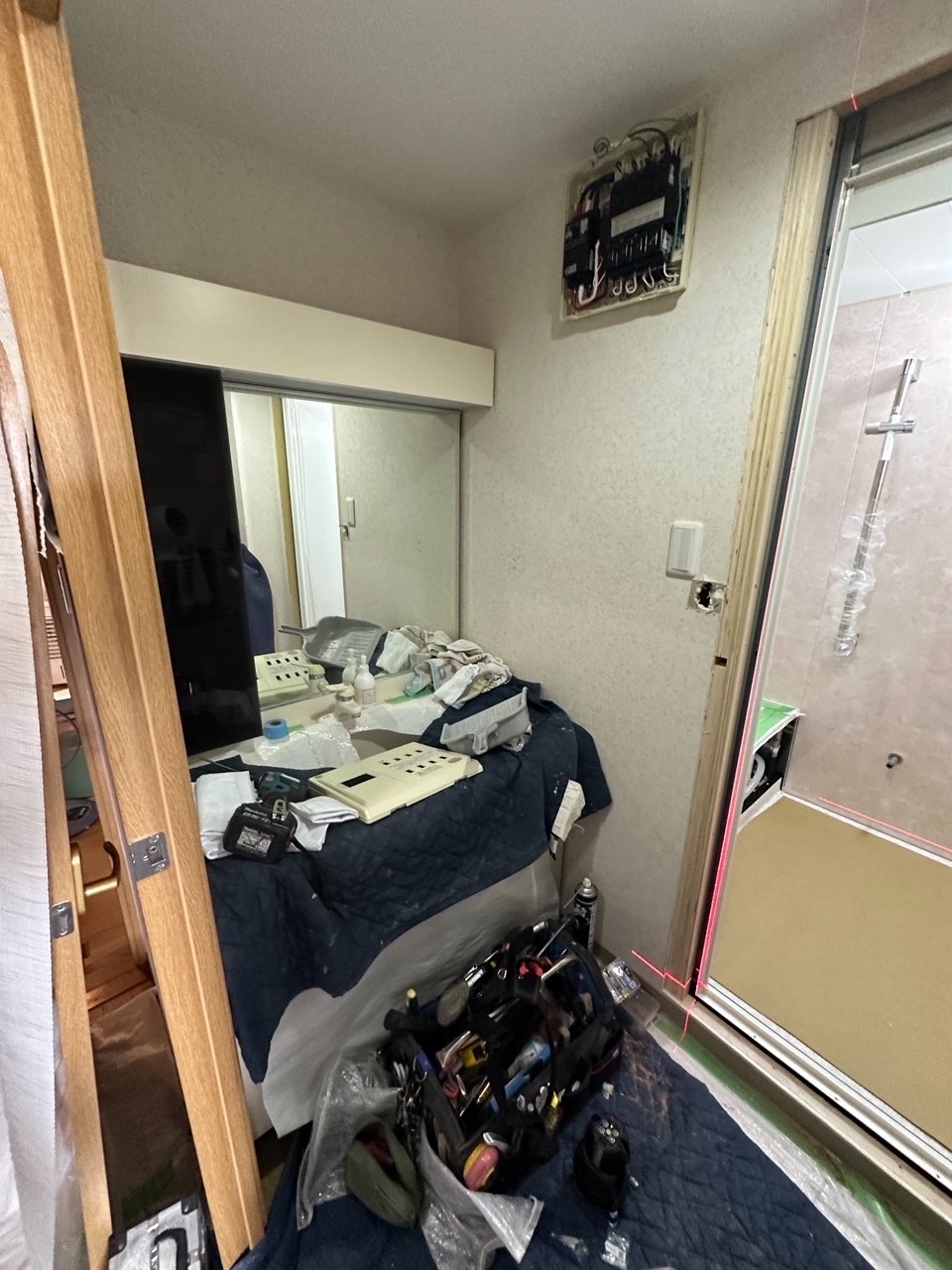 | 工事詳細 | 洗面室リフォーム ・洗面台取り替え ・クロス貼り替え ・床CF貼り替え ・ソフト巾木貼り替え ・防水パン交換 ・タオル掛け取り付け ・換気カバー交換 ・コンセント/スイッチ交換 |