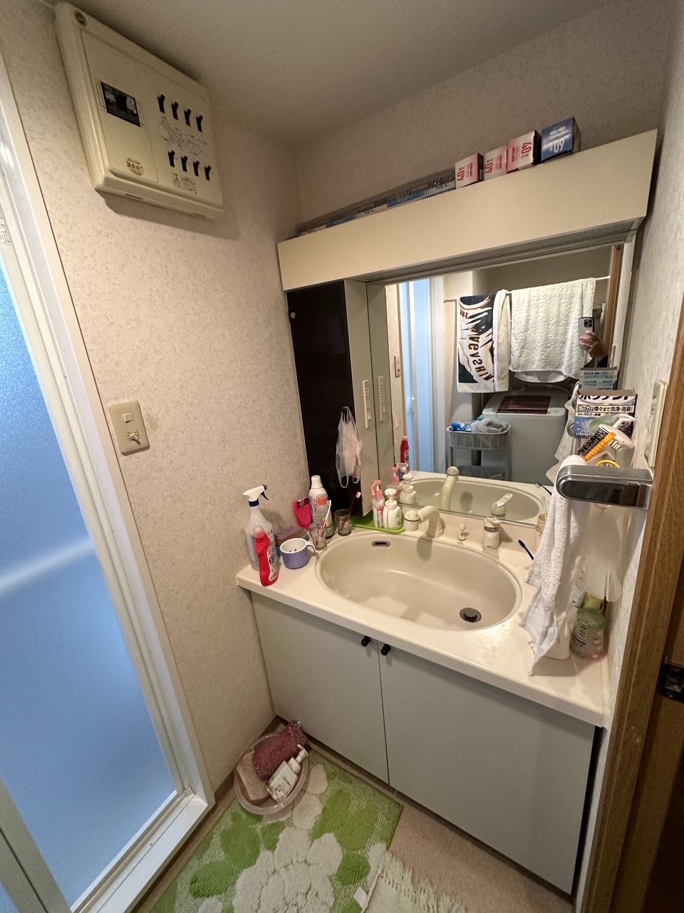 工事詳細 | 洗面室リフォーム ・洗面台取り替え ・クロス貼り替え ・床CF貼り替え ・ソフト巾木貼り替え ・防水パン交換 ・タオル掛け交換 ・換気カバー交換 |