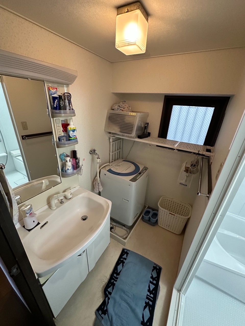 工事詳細 | 洗面室リフォーム ・洗面台取り替え ・クロス貼り替え ・床CF貼り替え ・ソフト巾木貼り替え ・防水パン交換 ・洗濯給水栓交換 ・換気カバー取り替え ・タオルリング設置 ・コンセント/スイッチ交換 |