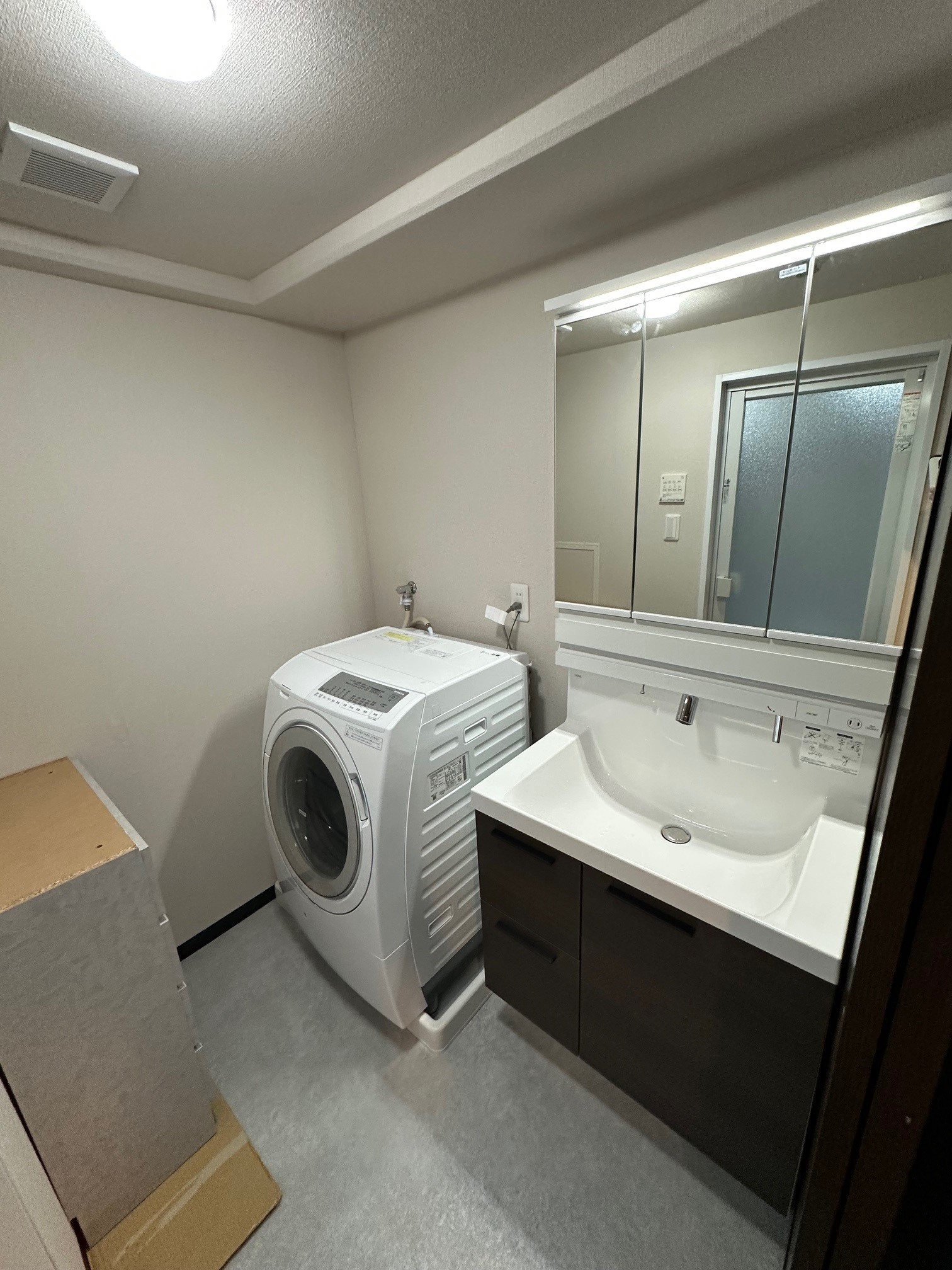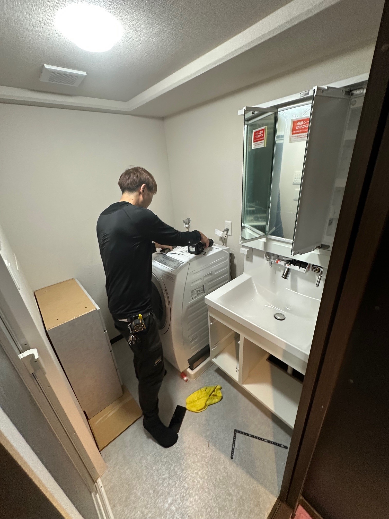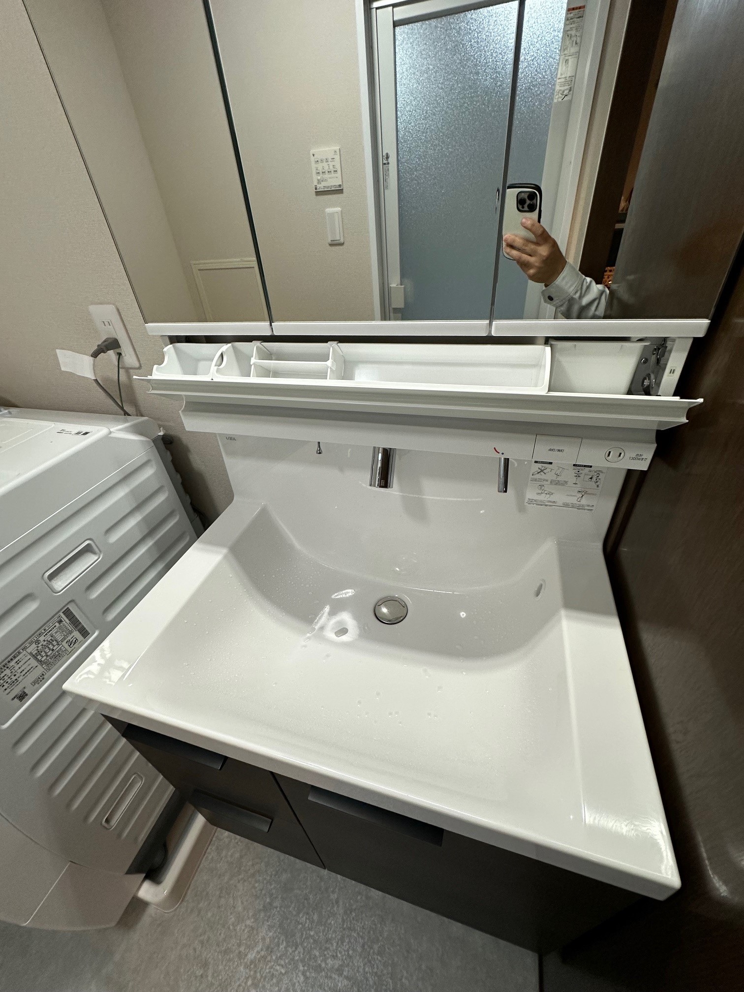 | 工事詳細 | 洗面室リフォーム ・洗面台取り替え ・クロス貼り替え ・ソフト巾木貼り替え ・床CF貼り替え ・防水パン交換 ・タオル掛け取り付け ・換気カバー交換 ・照明/コンセント/スイッチ交換 |
