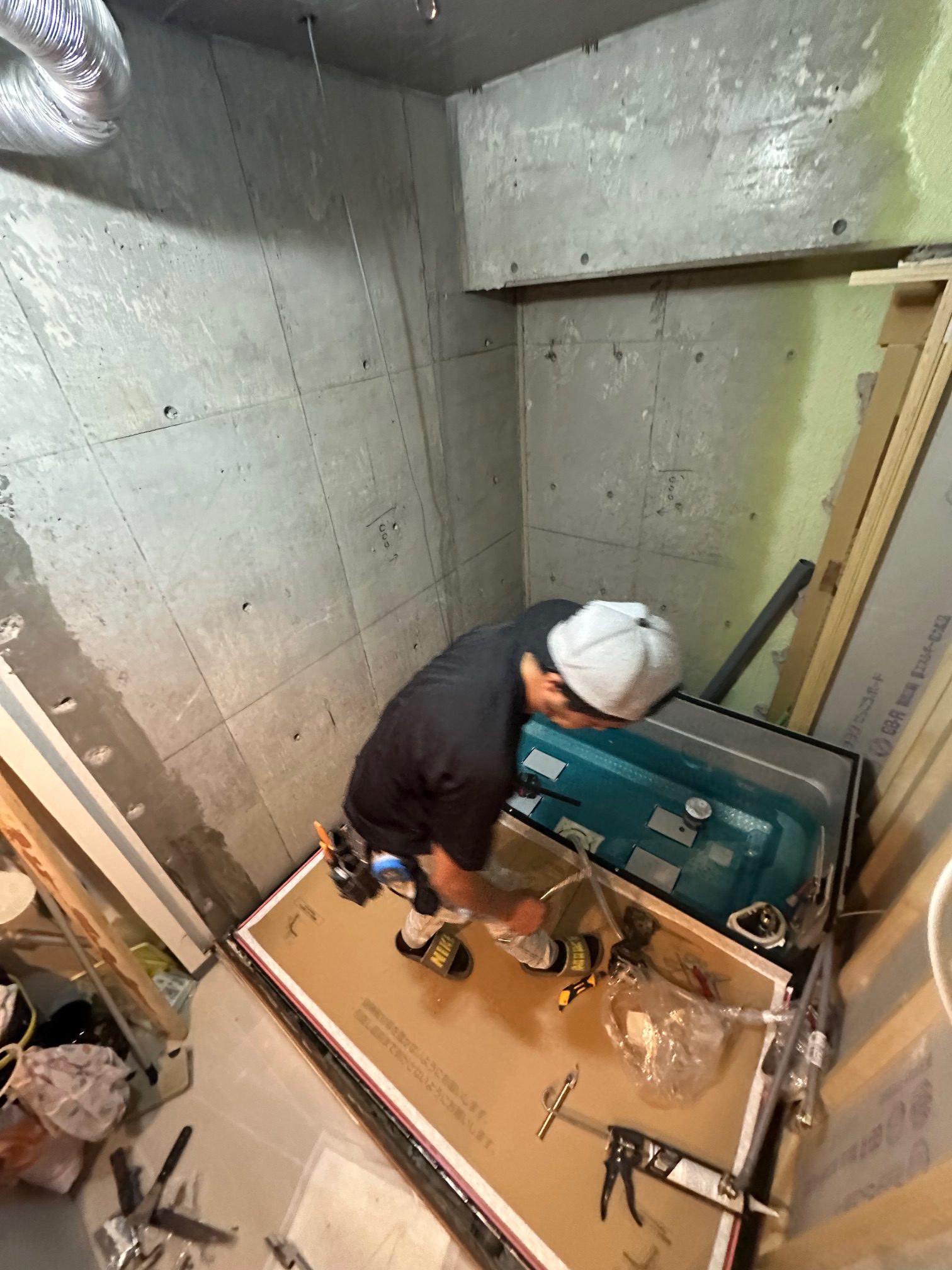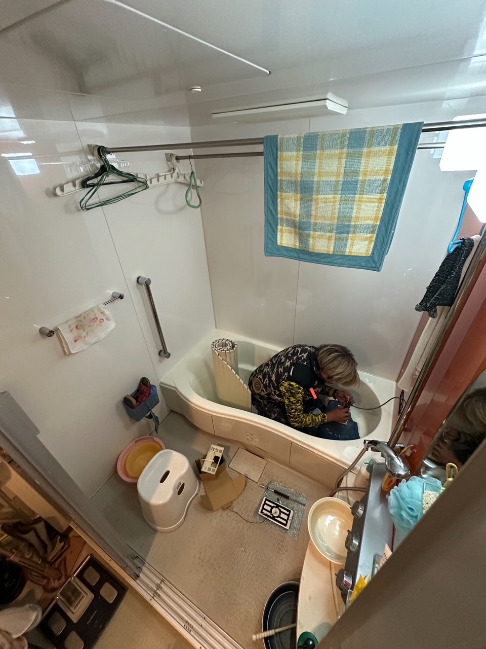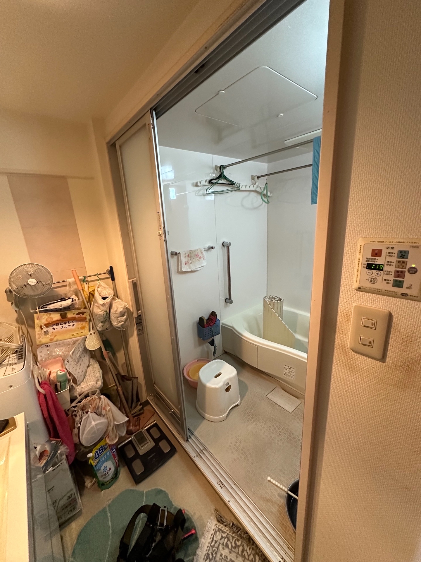 | 工事詳細 | 浴室改修工事 ・周辺パネル:プリエホワイト ・アクセントパネル:マテリアルアロマグリーン ・浴槽:ゆるリラ浴槽(アクアN) ・カウンター:ホワイト ・収納棚:マグネットタイプ(ホワイト) ・床:ほっカラリ床(ホワイト ラグ調) ・換気扇:三乾王 |