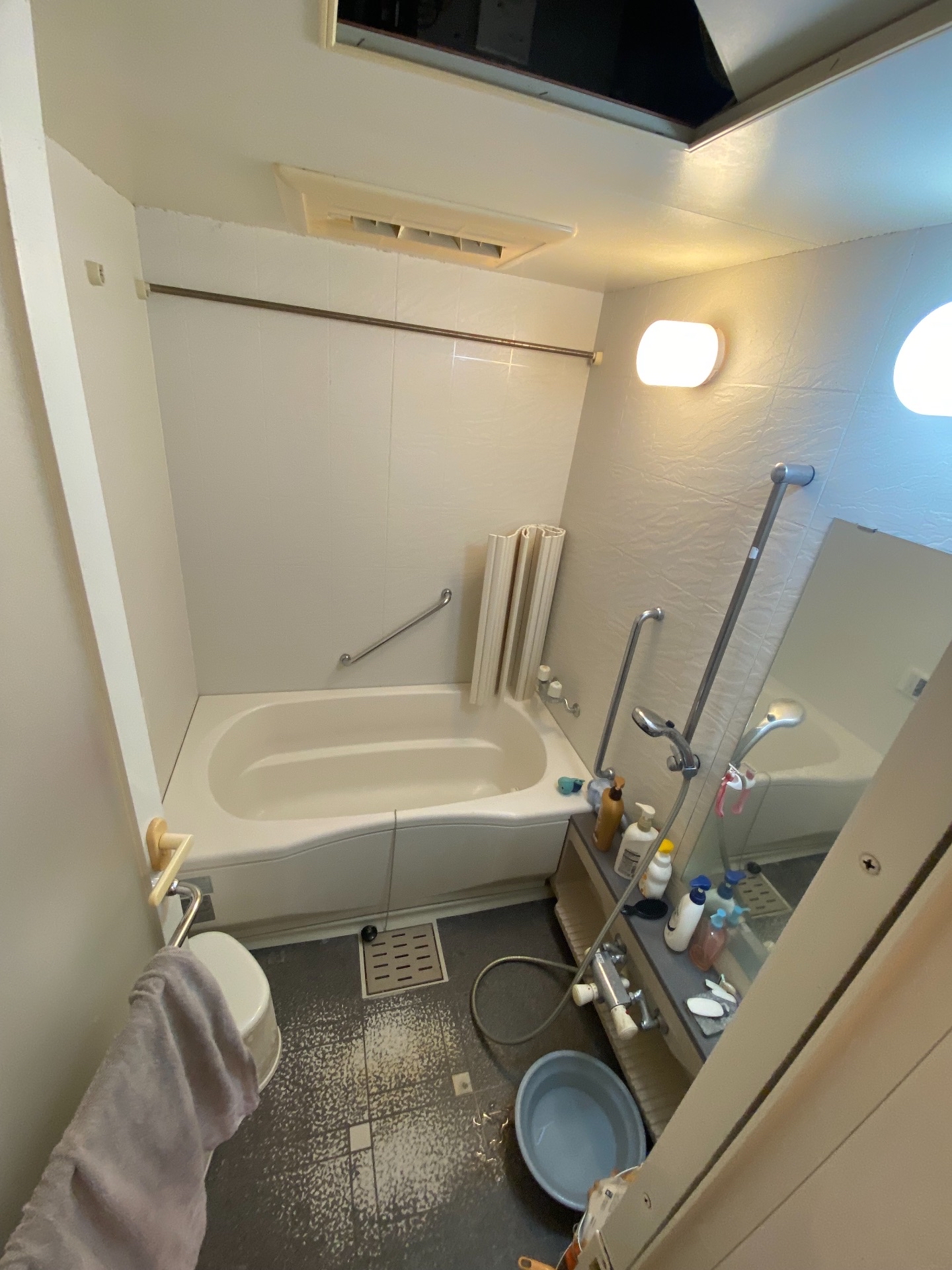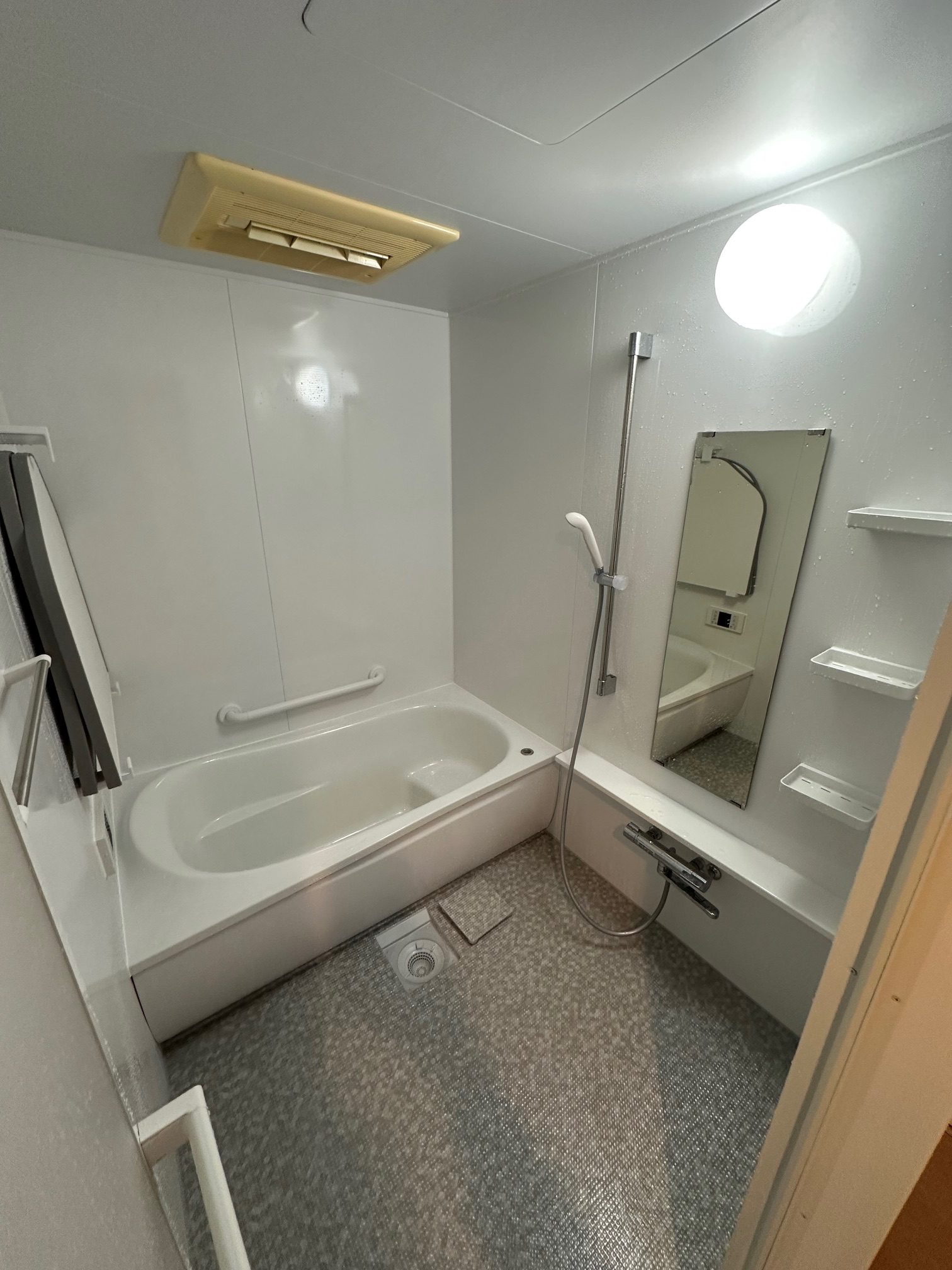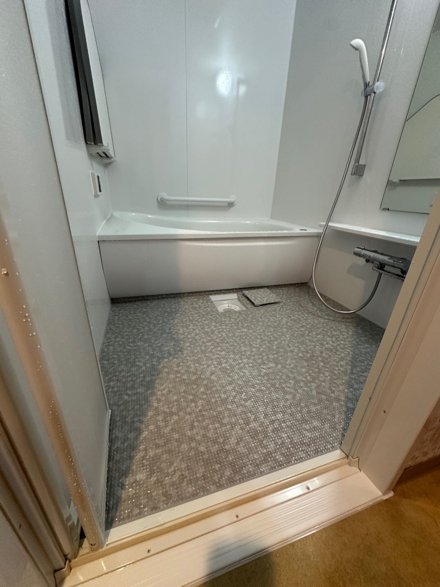 | 工事詳細 | 浴室改修工事 ・周辺パネル:プリエホワイト ・浴槽:ゆるリラ浴槽(ホワイト) ・カウンター:ホワイト ・床:ほっカラリ床(ライトグレー) ・換気扇:現状使用 |