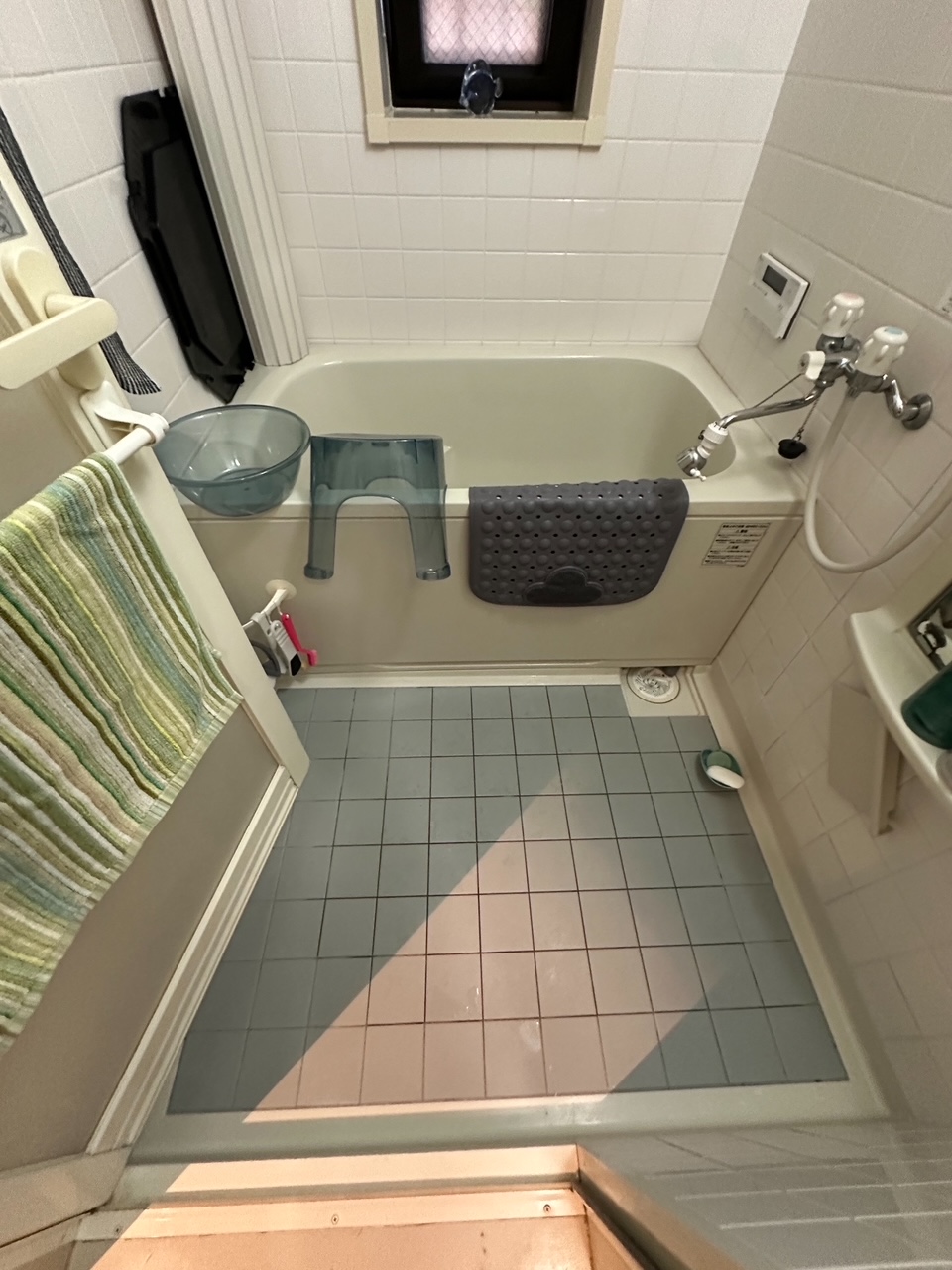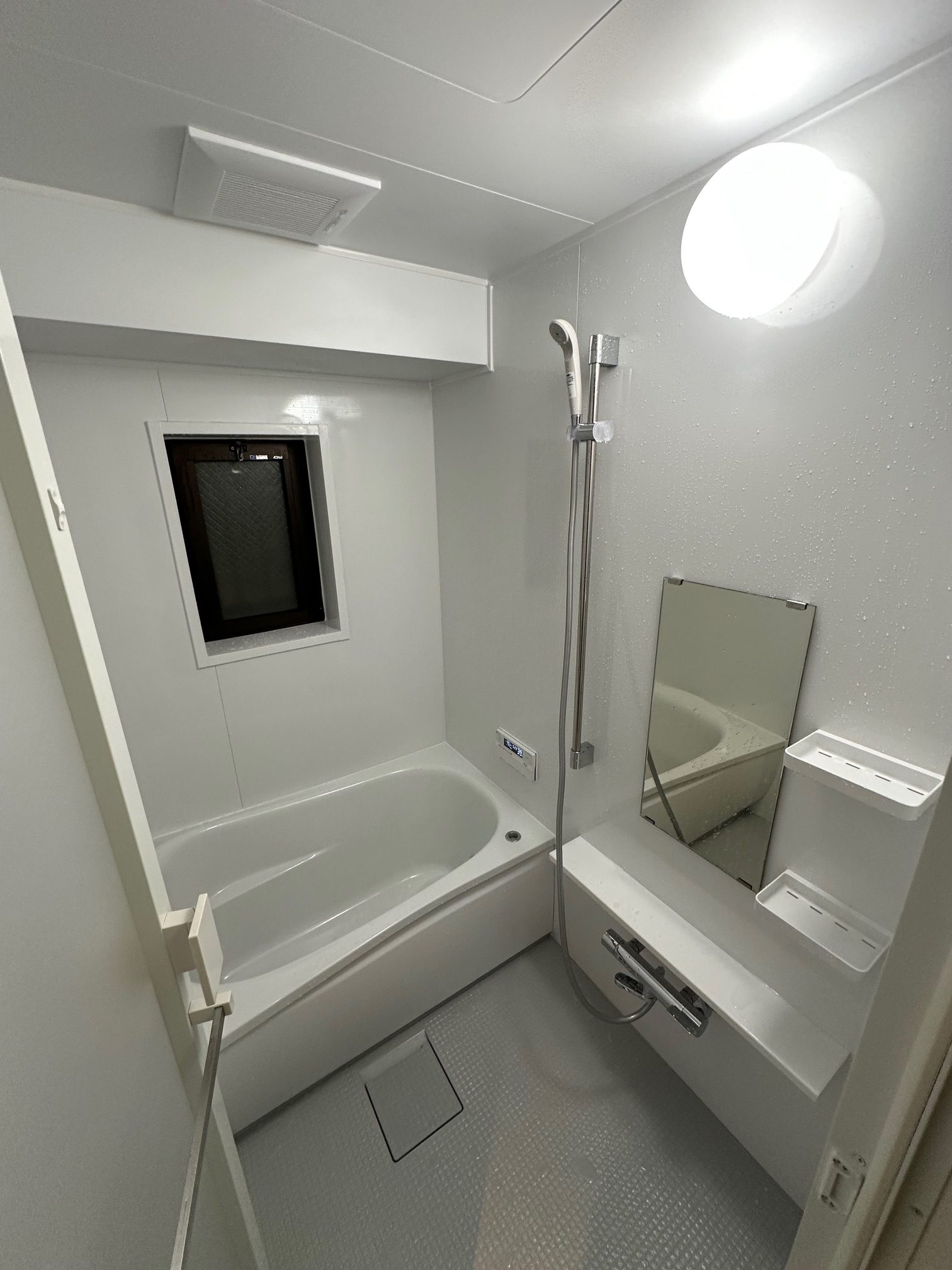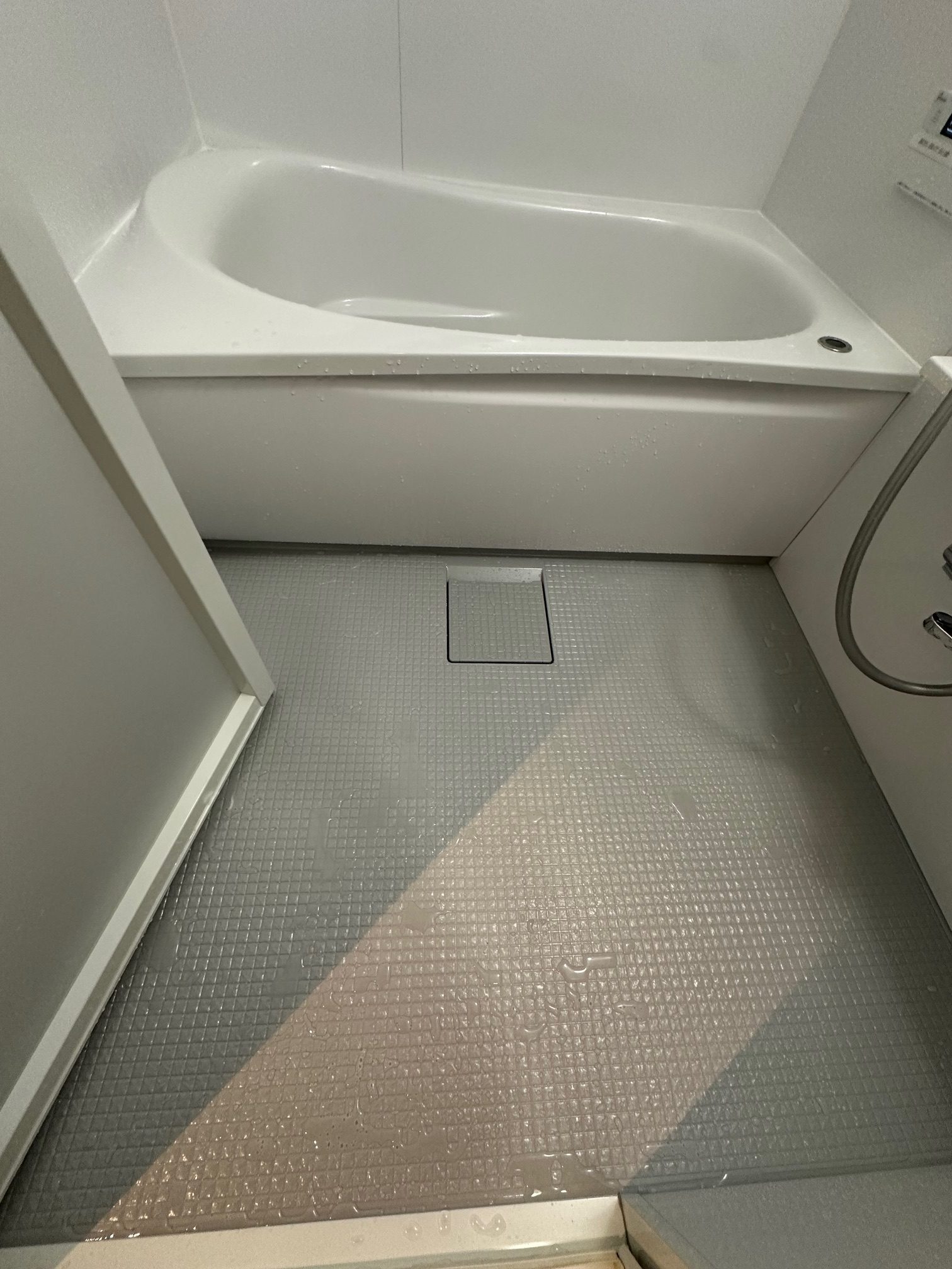 | 工事詳細 | 浴室改修工事 ・周辺パネル:プリエホワイト ・浴槽:ゆるリラ浴槽(ホワイト) ・カウンター:ホワイト ・床:カラリ床(ライトグレー) |