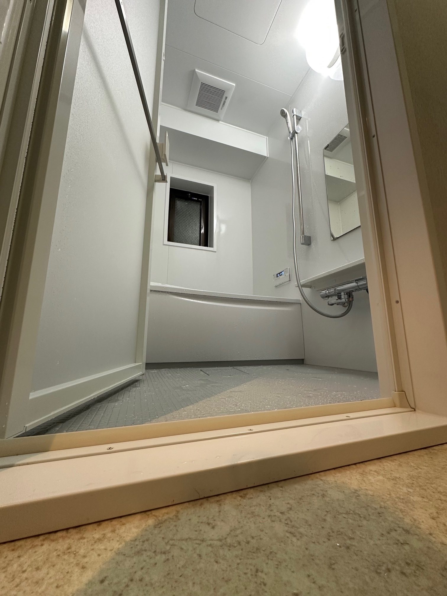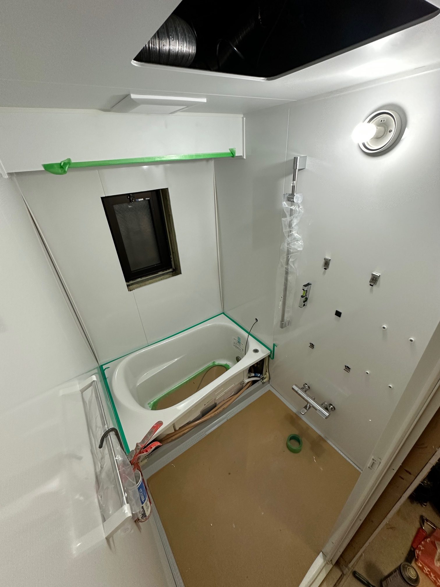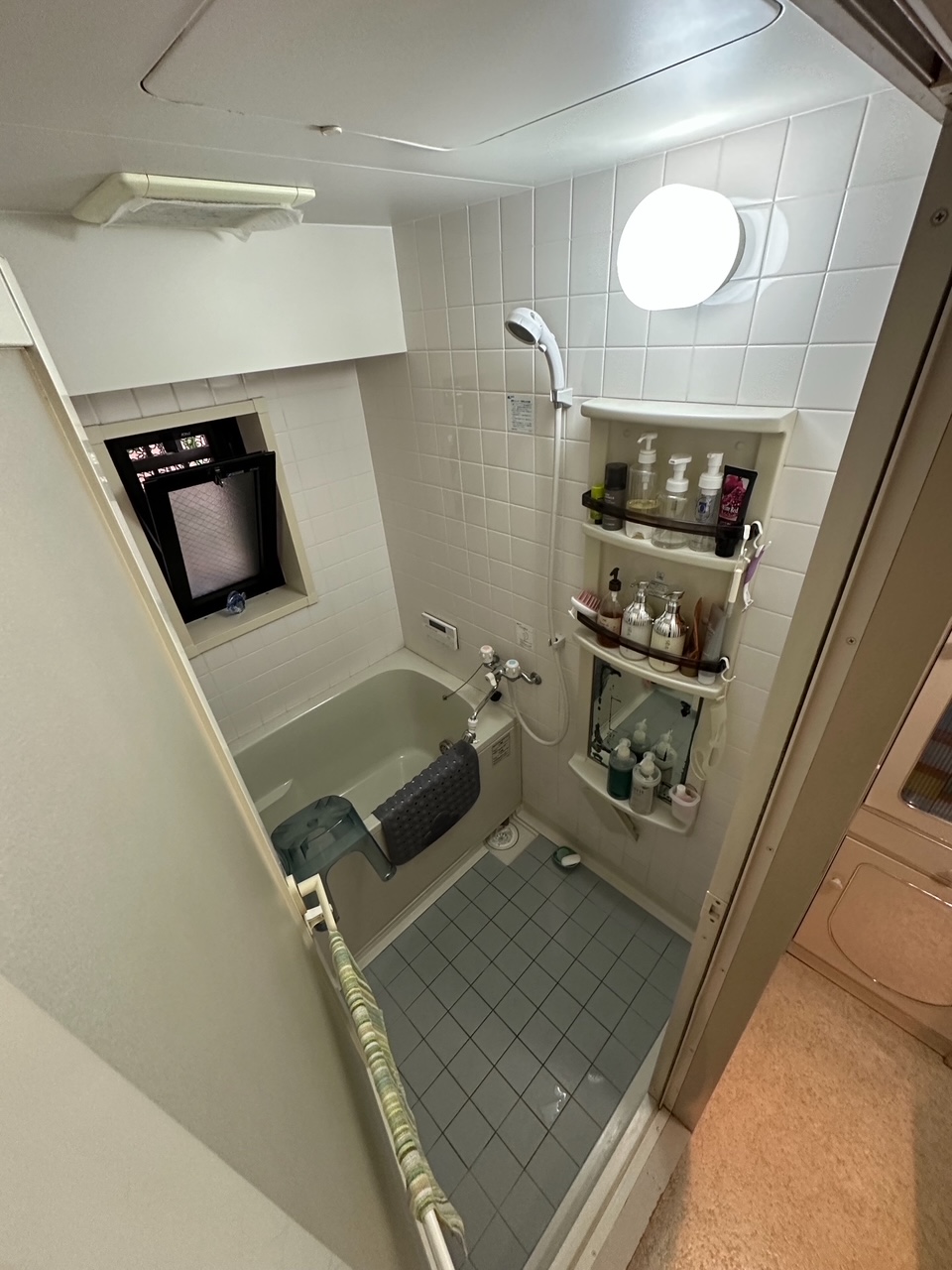 | 工事詳細 | 浴室改修工事 ・周辺パネル:プリエホワイト ・浴槽:ゆるリラ浴槽(ホワイト) ・カウンター:ホワイト ・床:カラリ床(ライトグレー) |