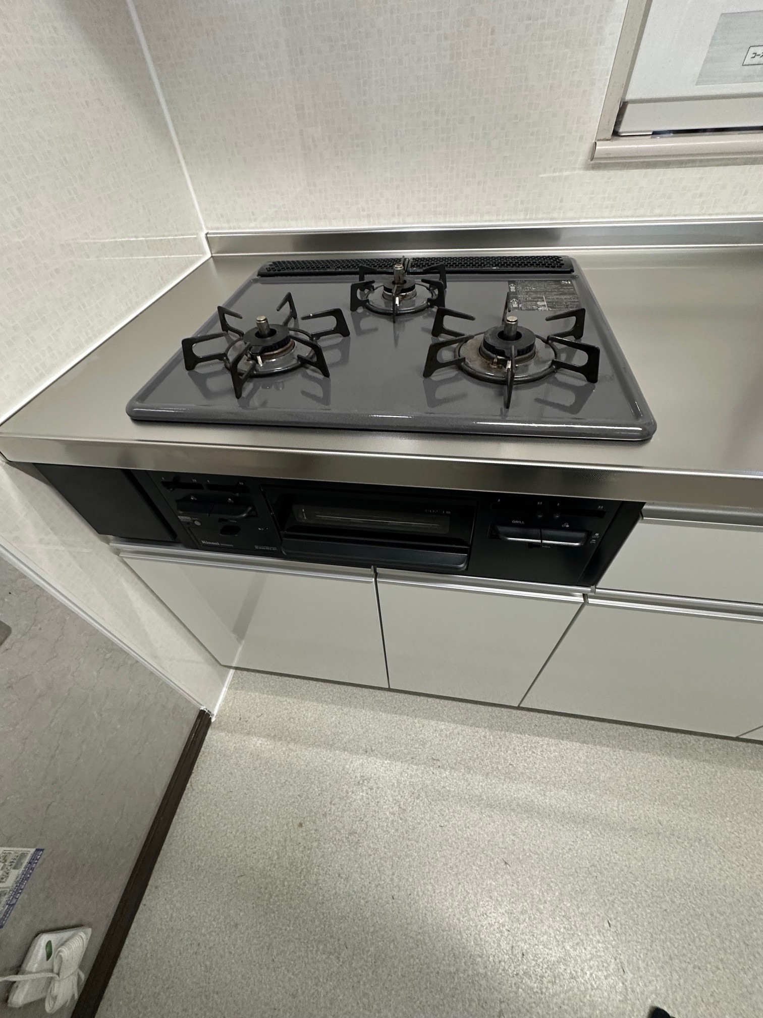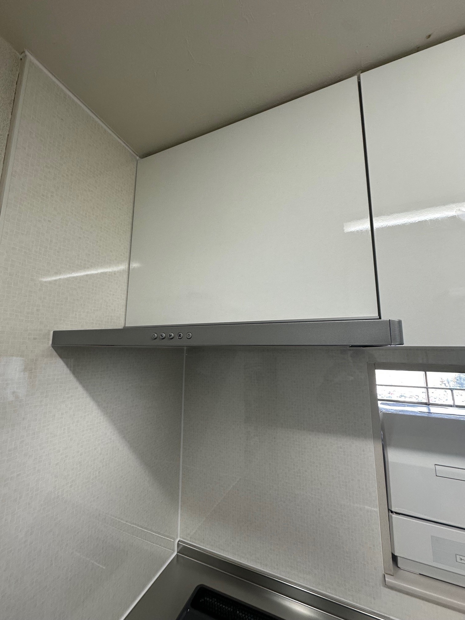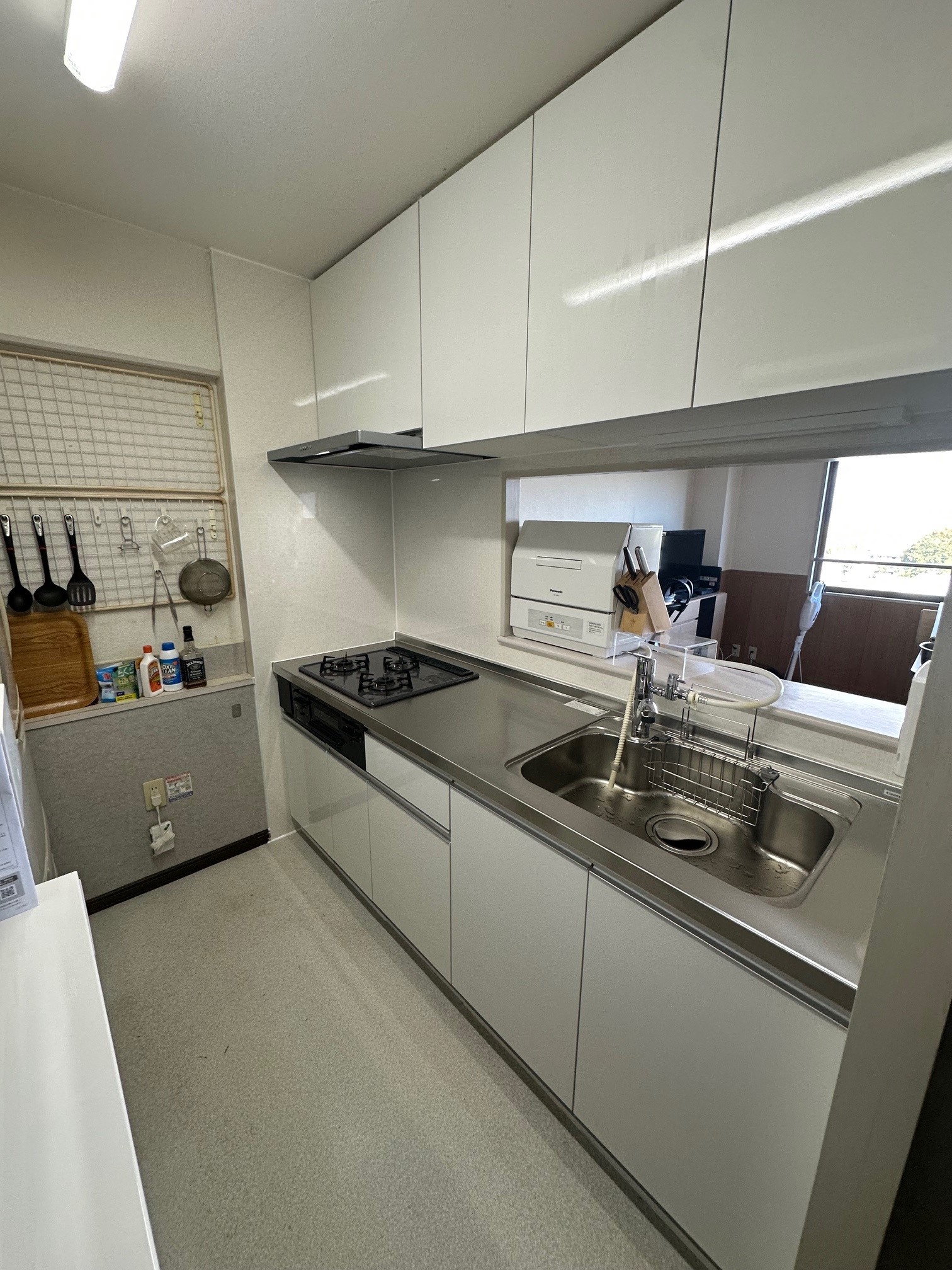 | 工事詳細 | キッチンリフォーム ・扉:開き(アコードホワイト) ・キッチンパネル:モザイクベージュ ・ワークトップ:ステンレス ・シンク:ステンレス ・コンロ:現状使用 ・レンジフード:フラットスリムW750 ・水栓:引出しホース付き水栓 ・取手:ライン取手(シルバー) |