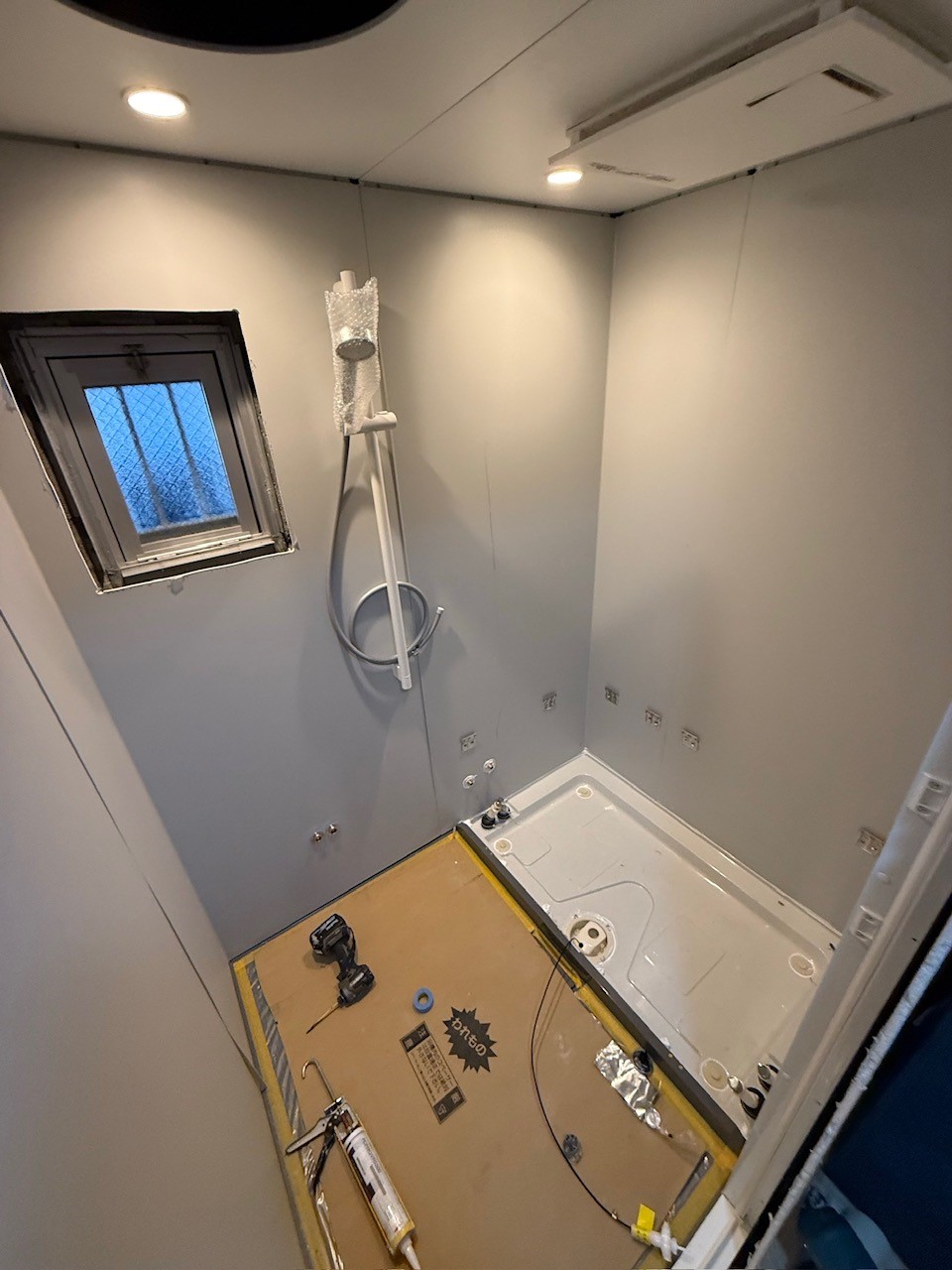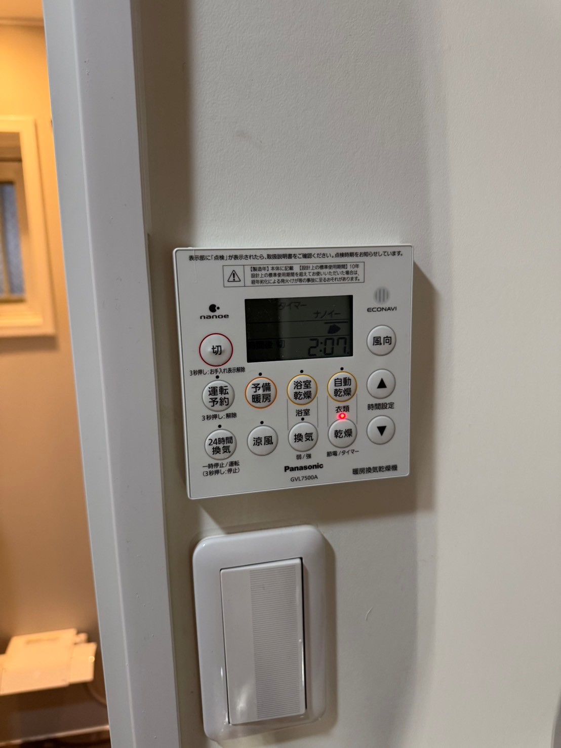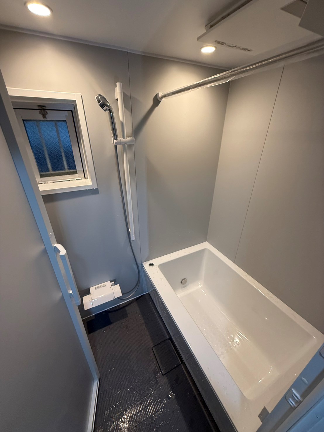| 工事詳細 | 浴室改修工事 ・周辺パネル:サンドグレー ・浴槽:ストレート浴槽(ピュアホワイト) ・床:ミディアムグレー ・換気扇:ナノイー搭載暖房換気乾燥機 |