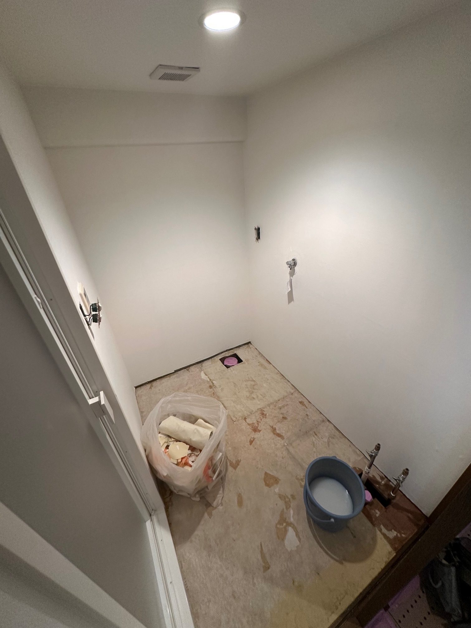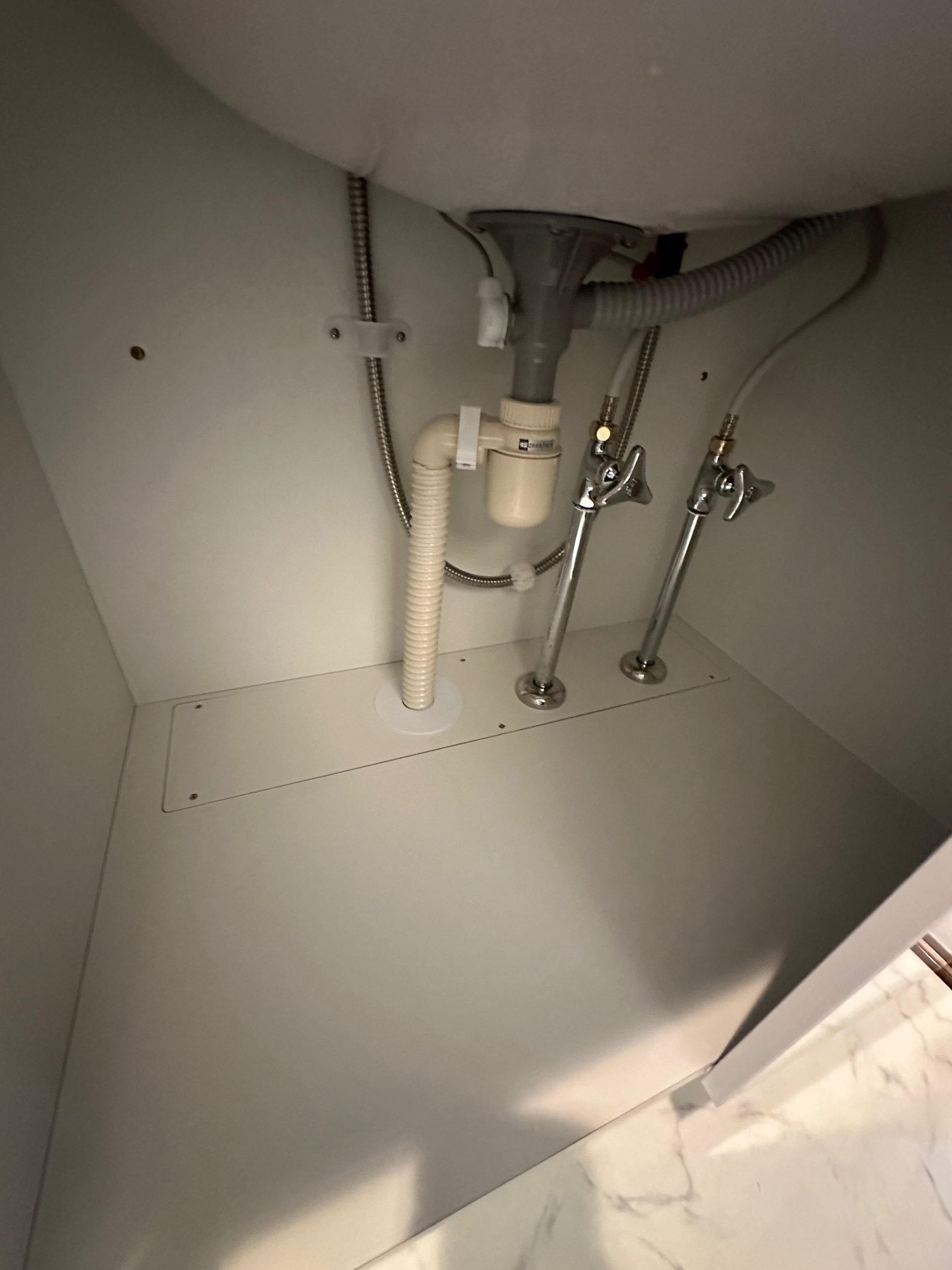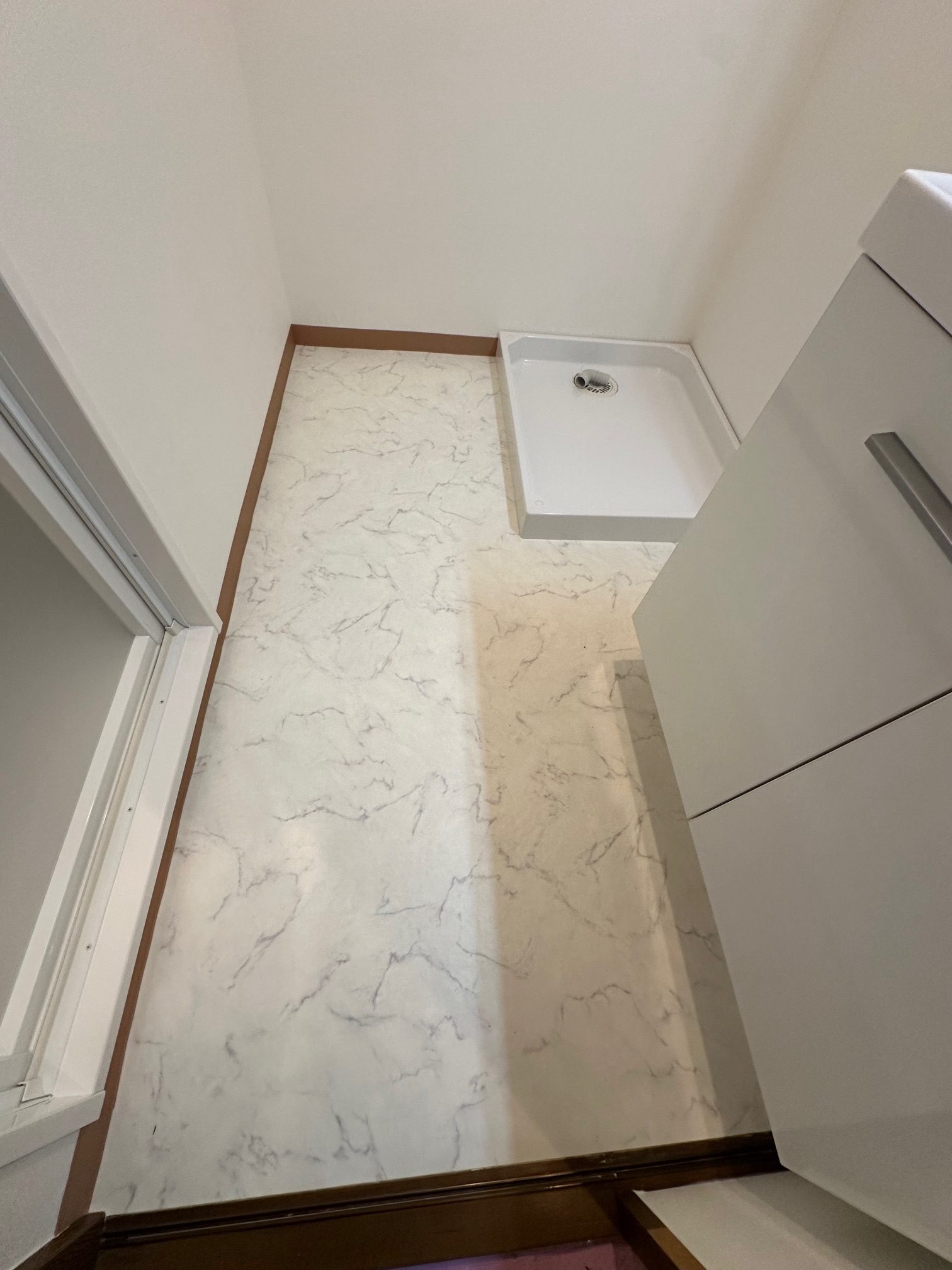 | 工事詳細 | 洗面所リフォーム ・洗面台取り替え ・クロス貼り替え ・ソフト巾木張り替え ・床CF貼り替え ・換気ガラリ交換 ・コンセント/スイッチ交換 ・ランドリーパイプ設置 |