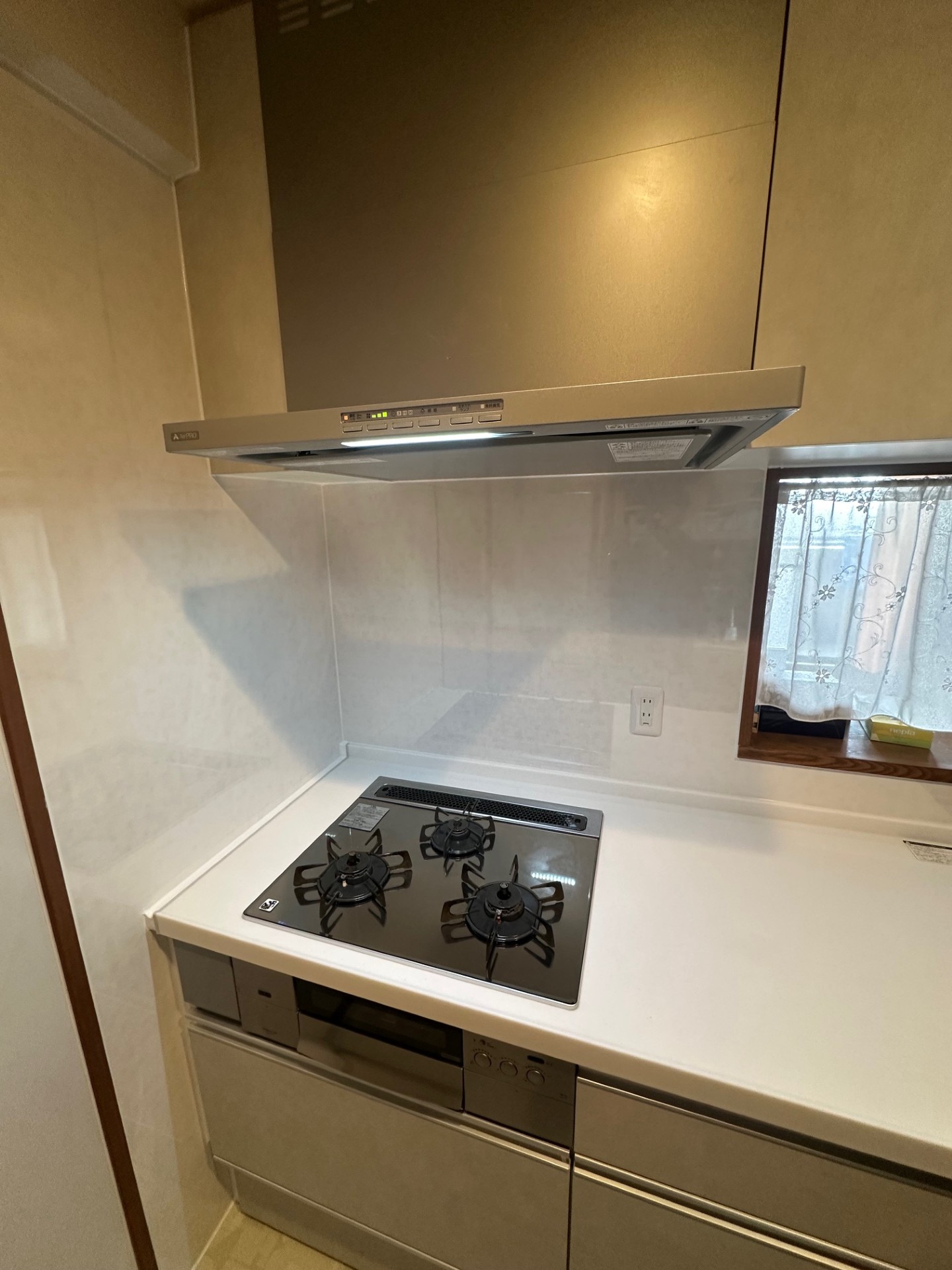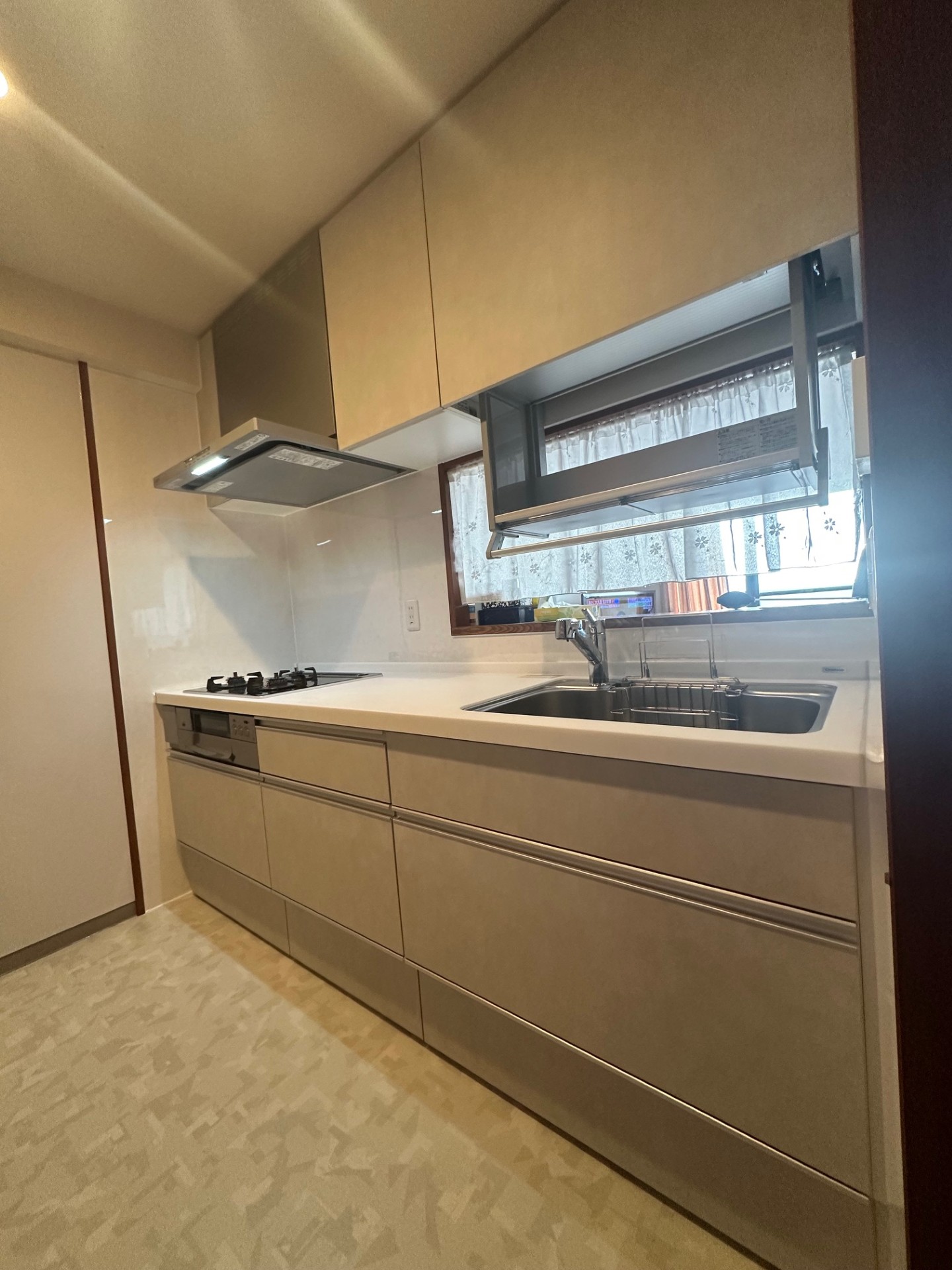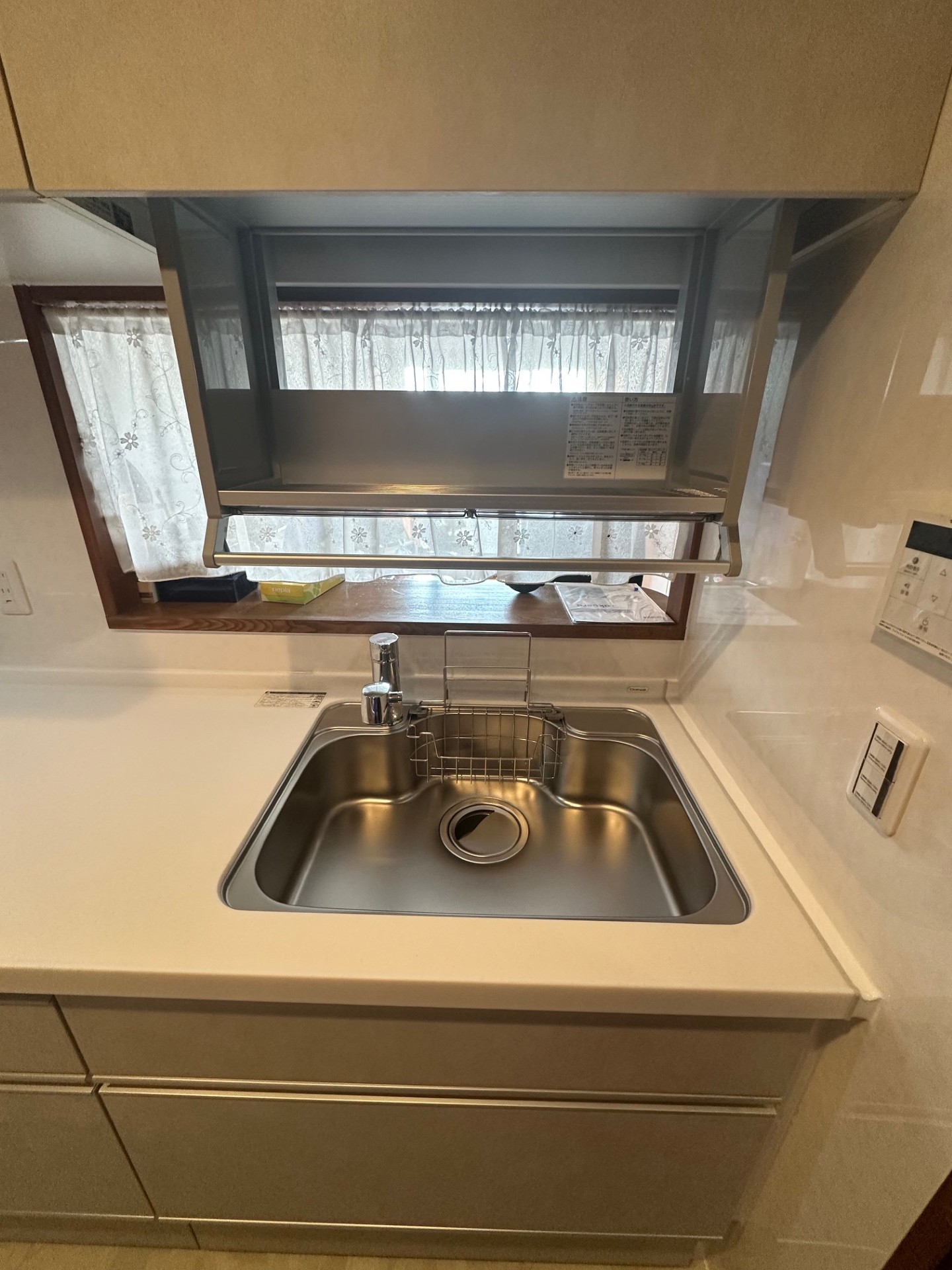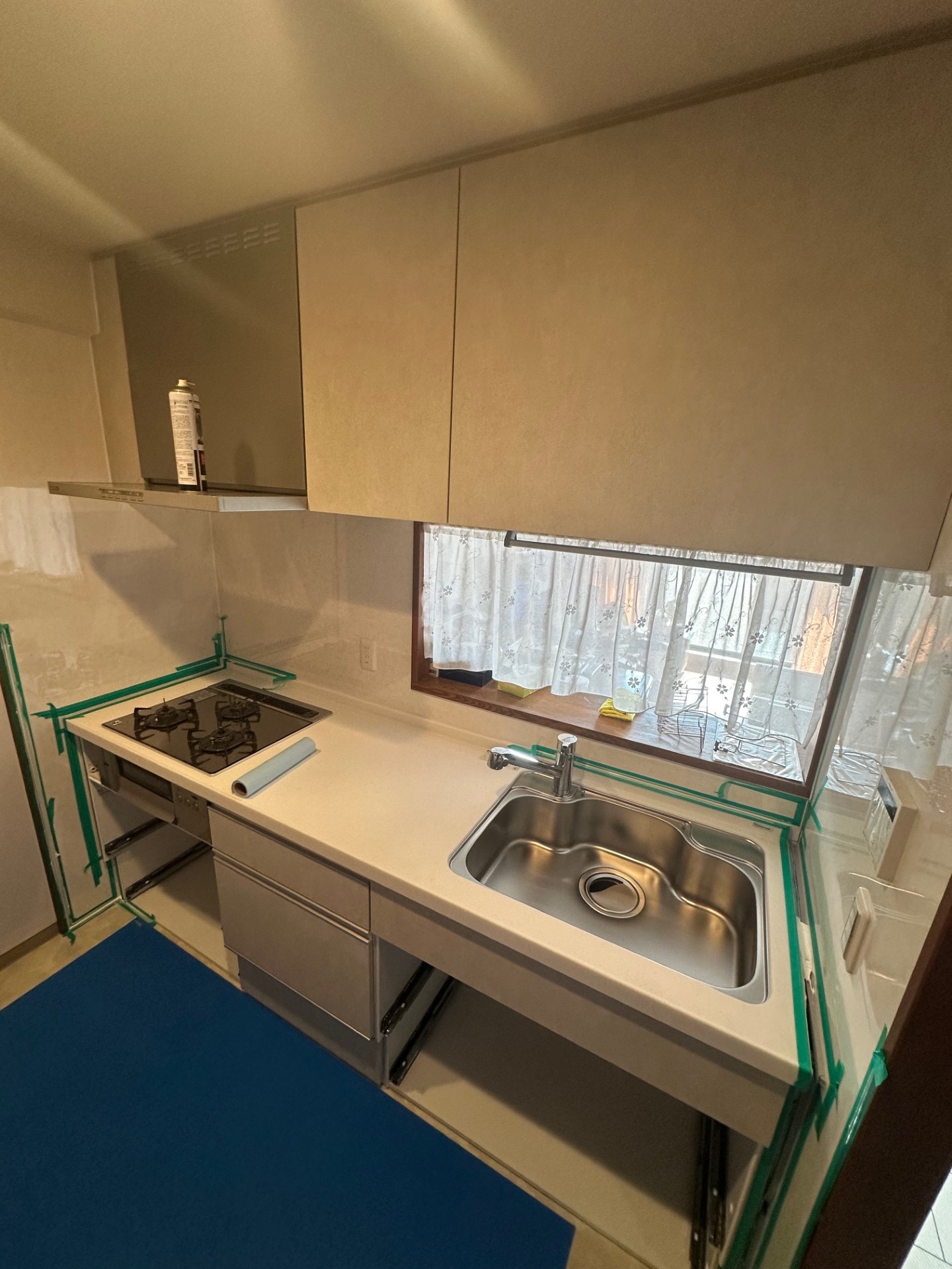 | 工事詳細 | キッチンリフォーム ・扉:スライド:トッコモカクリーム ・キッチンパネル:ホワイトクラウド ・ワークトップ:人大クレマホワイト ・シンク:ステンレス ・コンロ:現状使用 ・レンジフード:現状使用 ・水栓:現状使用 |