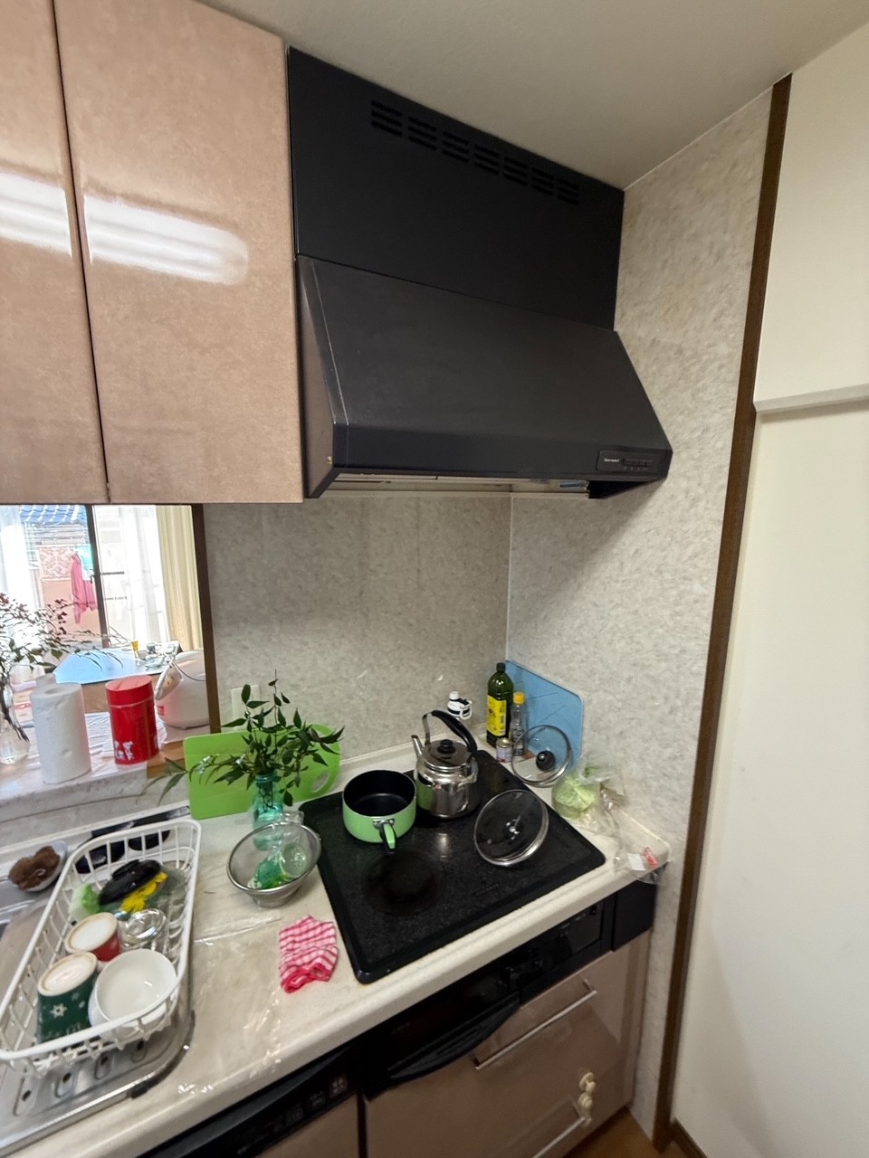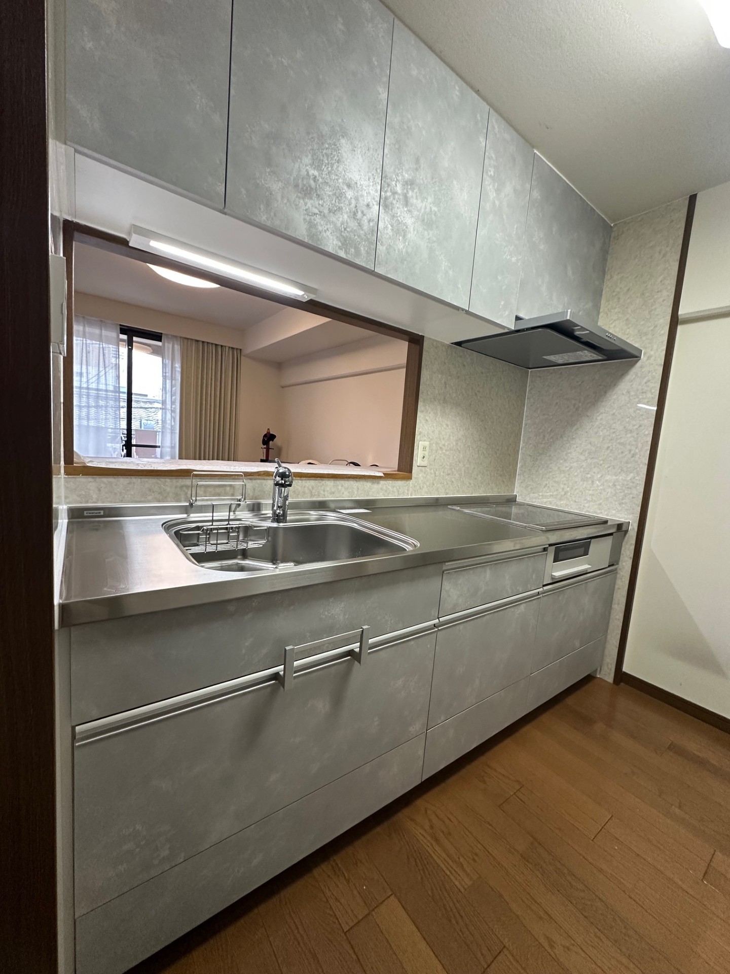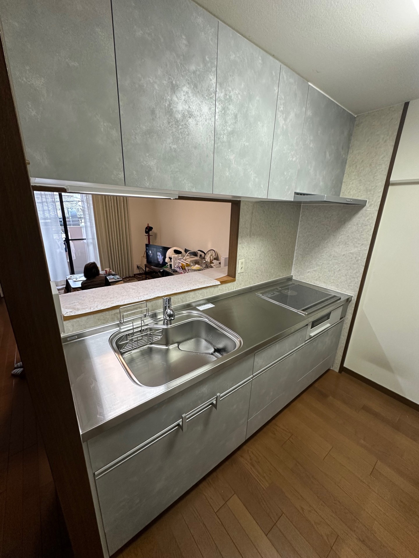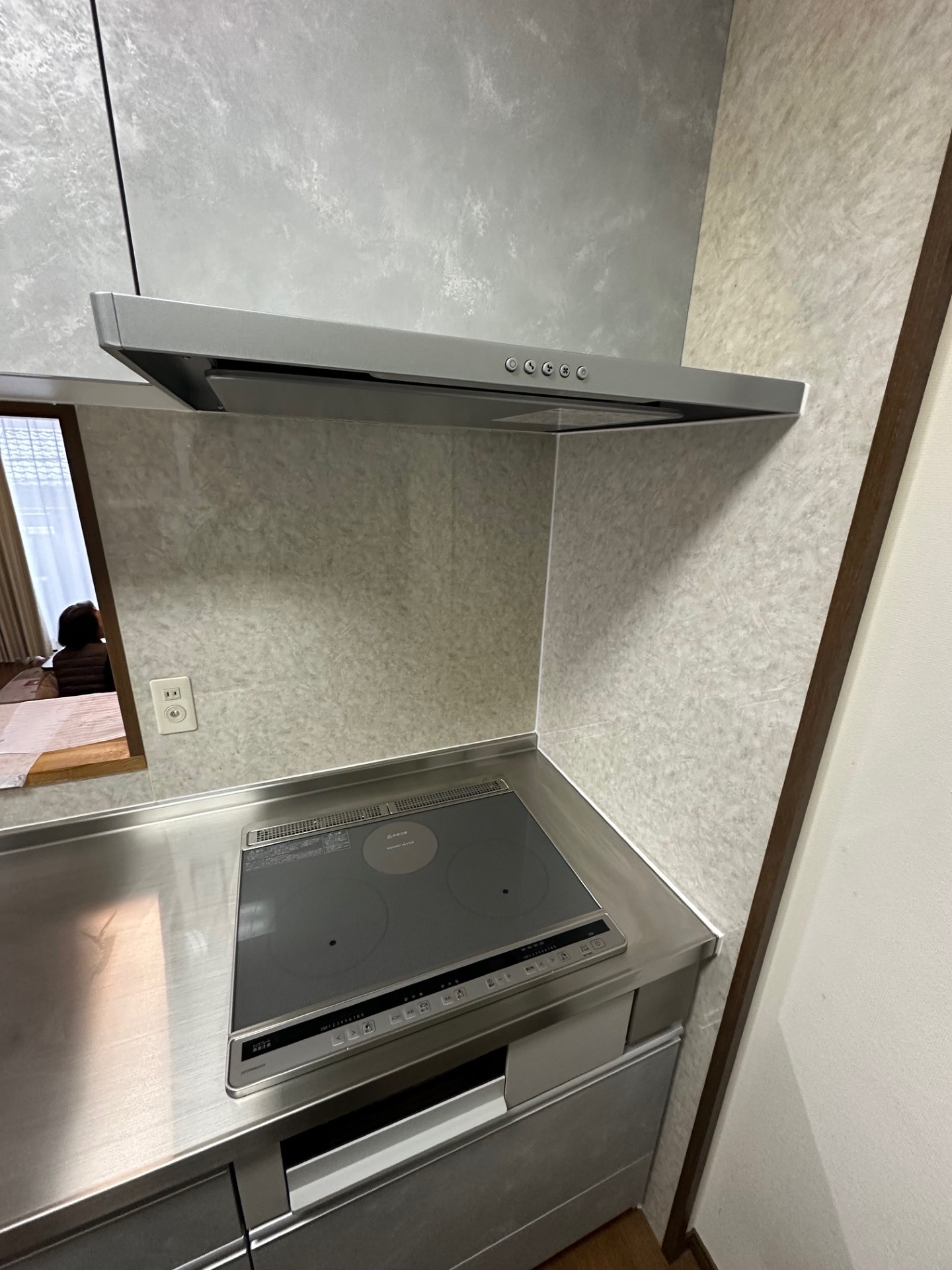 | 工事詳細 | キッチンリフォーム ・扉:スライド(トワルグレー) ・ワークトップ: ステンレス(ヘアライン) ・シンク:流レールシンク ・コンロ:2口IH+ラジエントヒーター(60cm) ・レンジフード:フラットスリムW750 ・キッチンパネル:現状使用 ・水栓: 現状使用 |