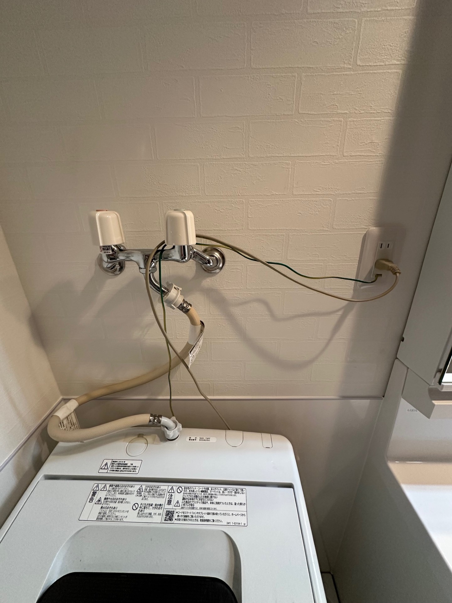 | 工事詳細 | 洗面所リフォーム ・洗面台取り替え ・腰上/天井クロス貼り替え ・腰下パネル張り ・床CF貼り替え ・防水パン交換 ・洗濯給水栓交換 ・タオル掛け設置 ・換気ガラリ交換 ・コンセント交換 ・スイッチ交換 |