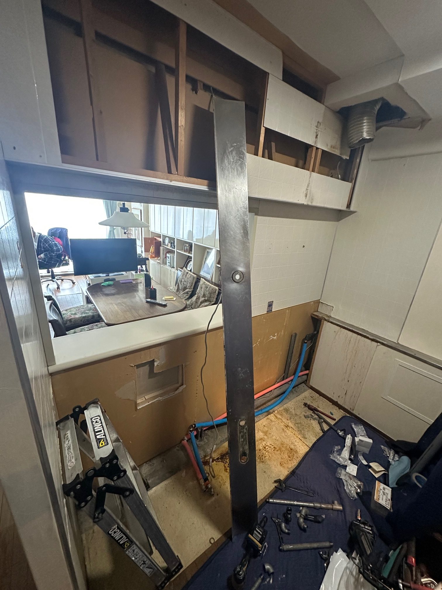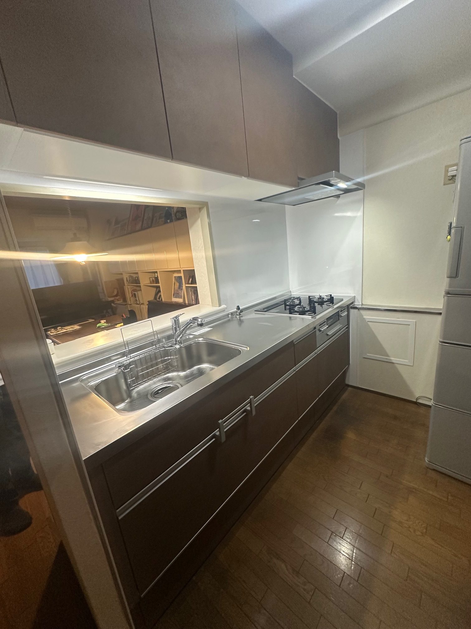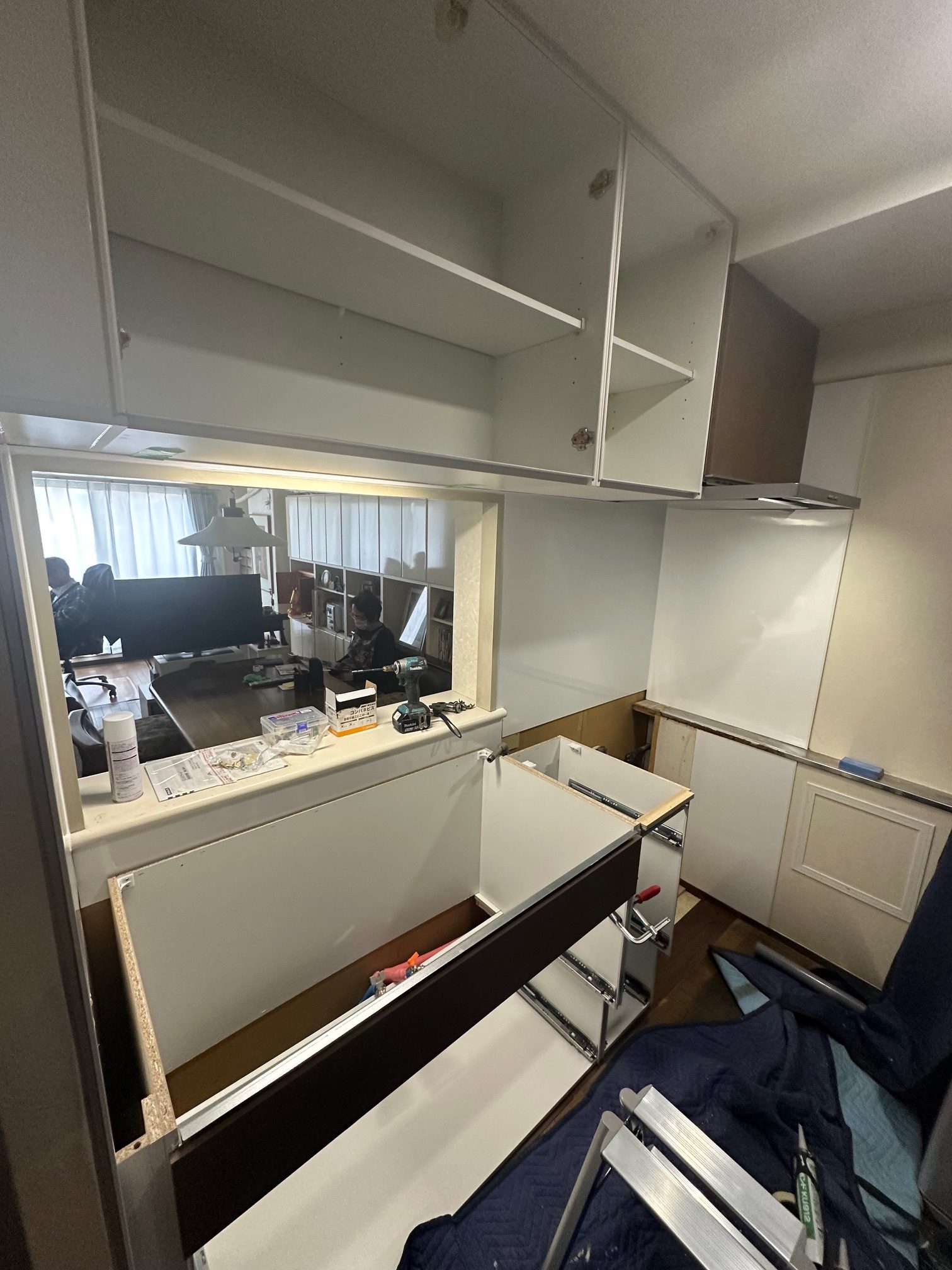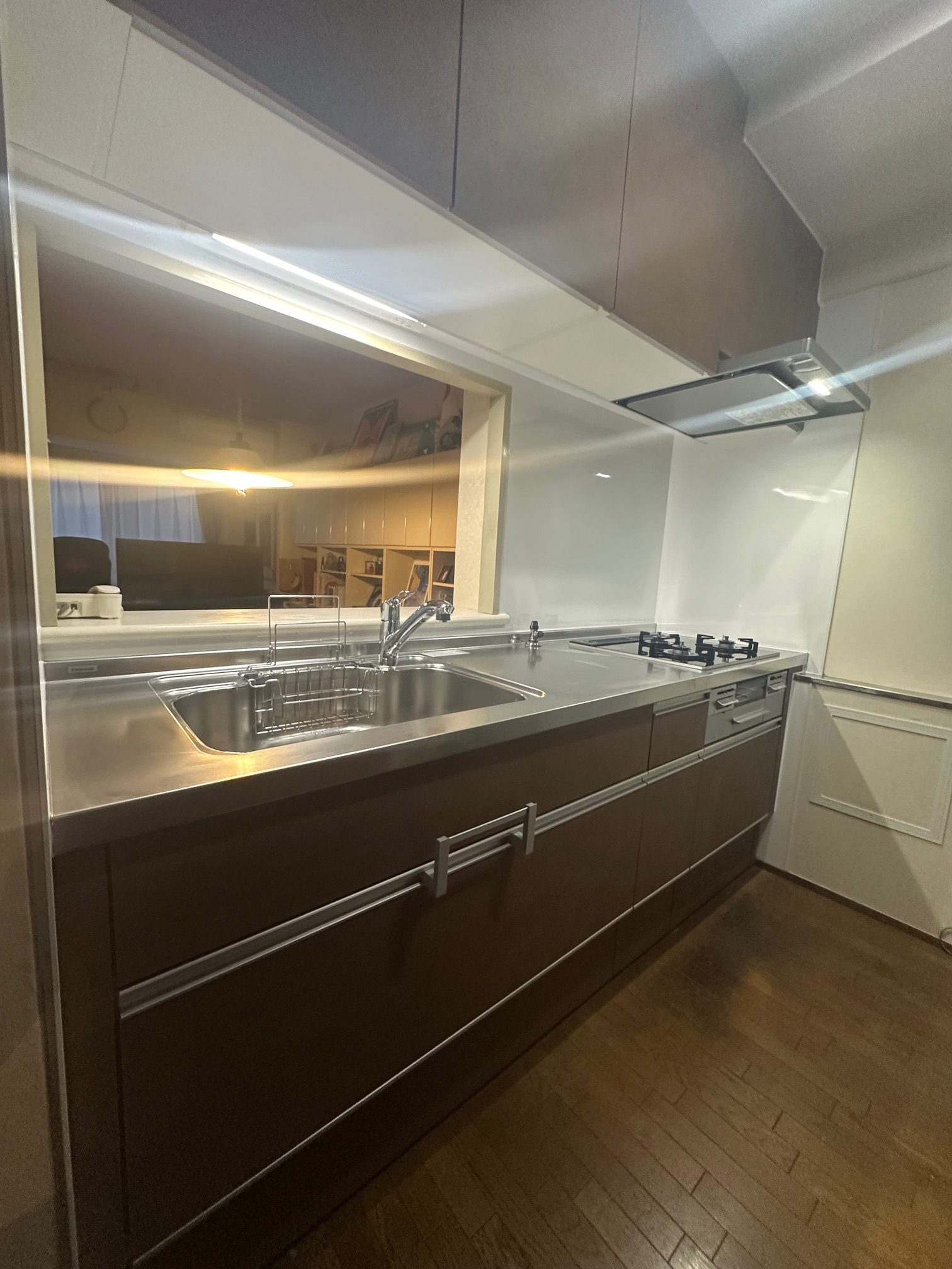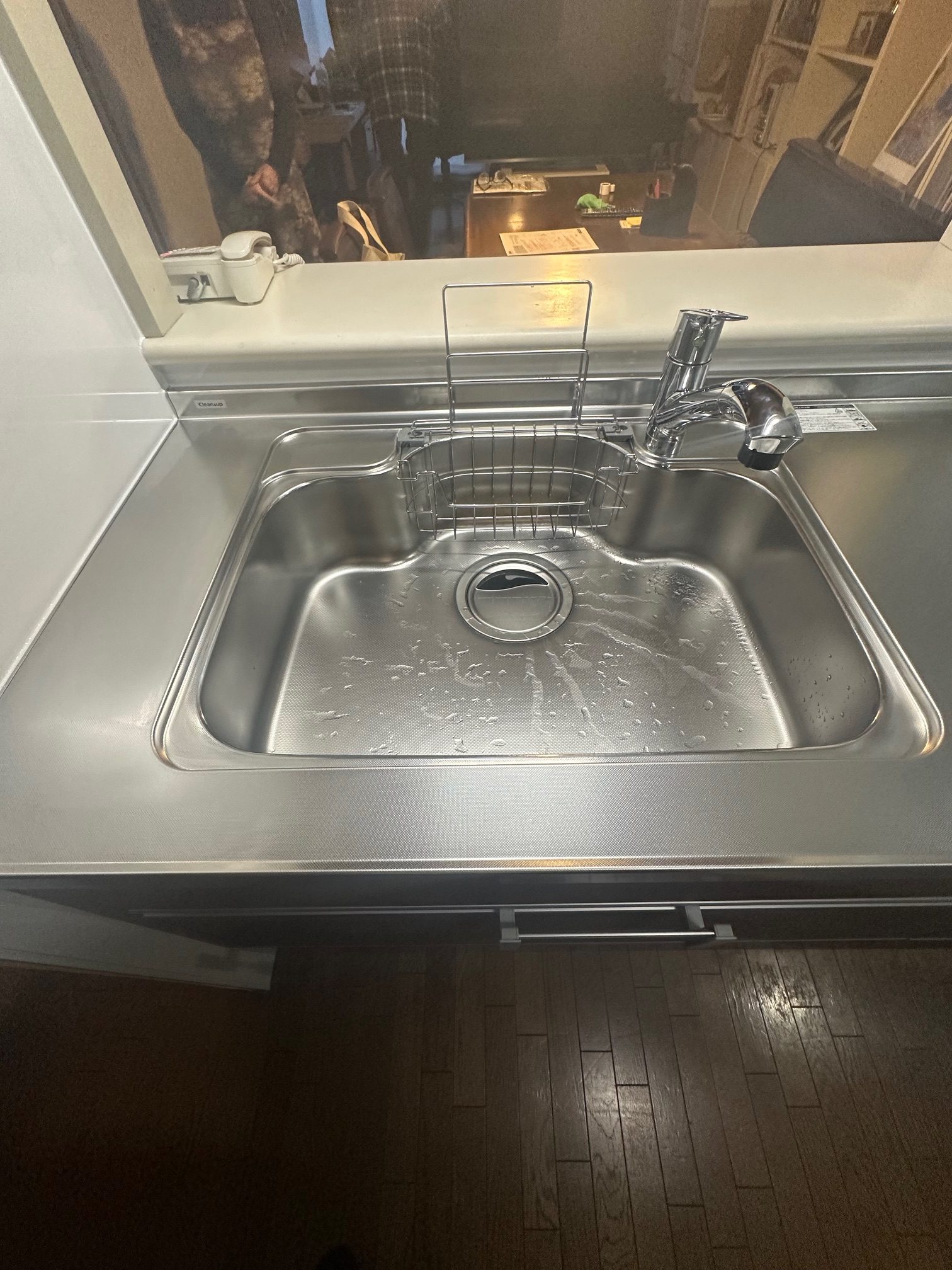 | 工事詳細 | キッチンリフォーム ・扉:スライド:トッコアンティーク ・キッチンパネル:クリアホワイト ・ワークトップ:ステンレス ・シンク:ステンレス ・コンロ:ガラストップ3口 ・レンジフード:フラットスリムW600 ・水栓:引出しホース付き |