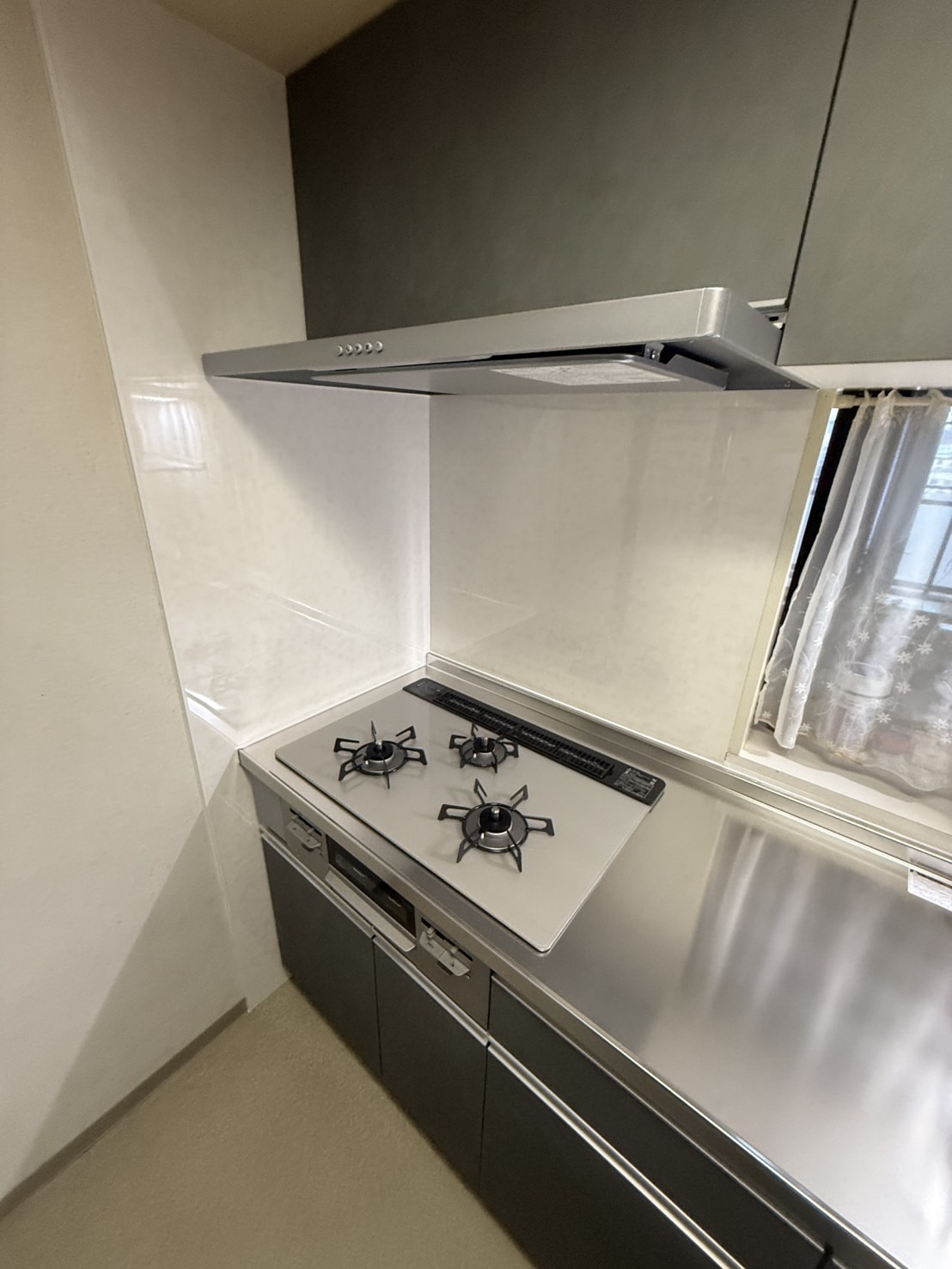| 工事詳細 | キッチンリフォーム ・扉:開き:トッコアイアングレー ・キッチンパネル:ホワイトクラウド ・ワークトップ:ステンレス ・シンク:ステンレス ・コンロ:ホーロートップ3口 ・レンジフード:フラットスリムW900 ・水栓:現状使用 |