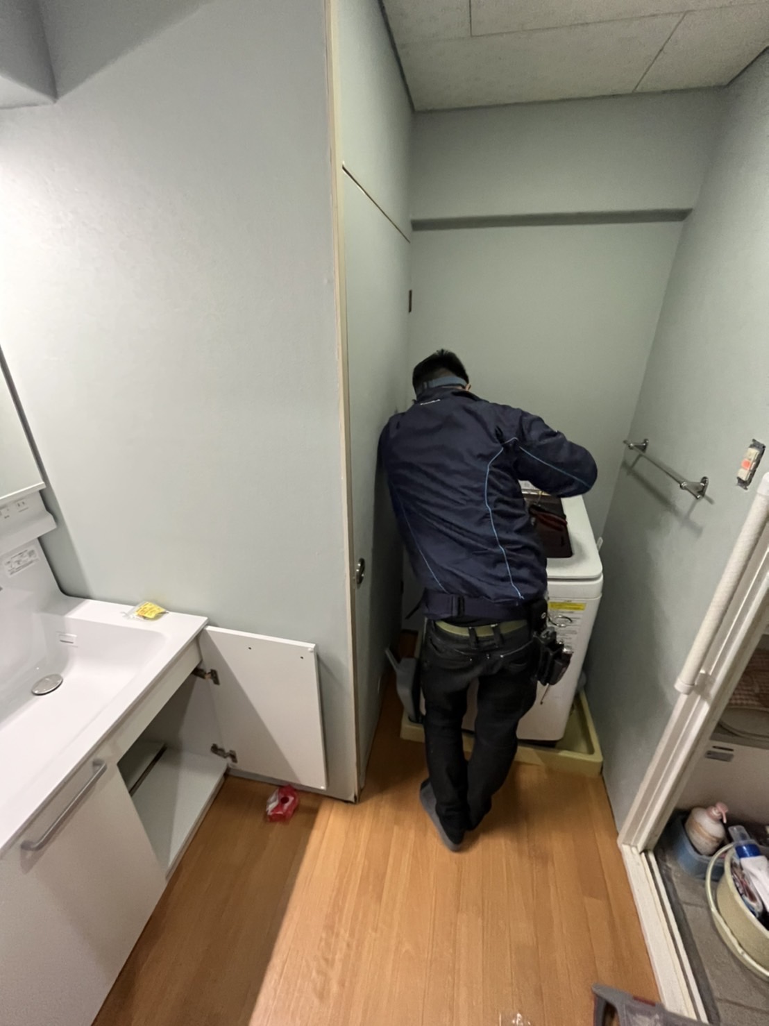 | 工事詳細 | 床CF、ソフト巾木、クロス張り替え、洗面化粧台の取り替え工事をさせて頂きました! 次回、ユニットバス改修工事宜しくお願い致します! <TOTO オクターブライト 750サイズ> |