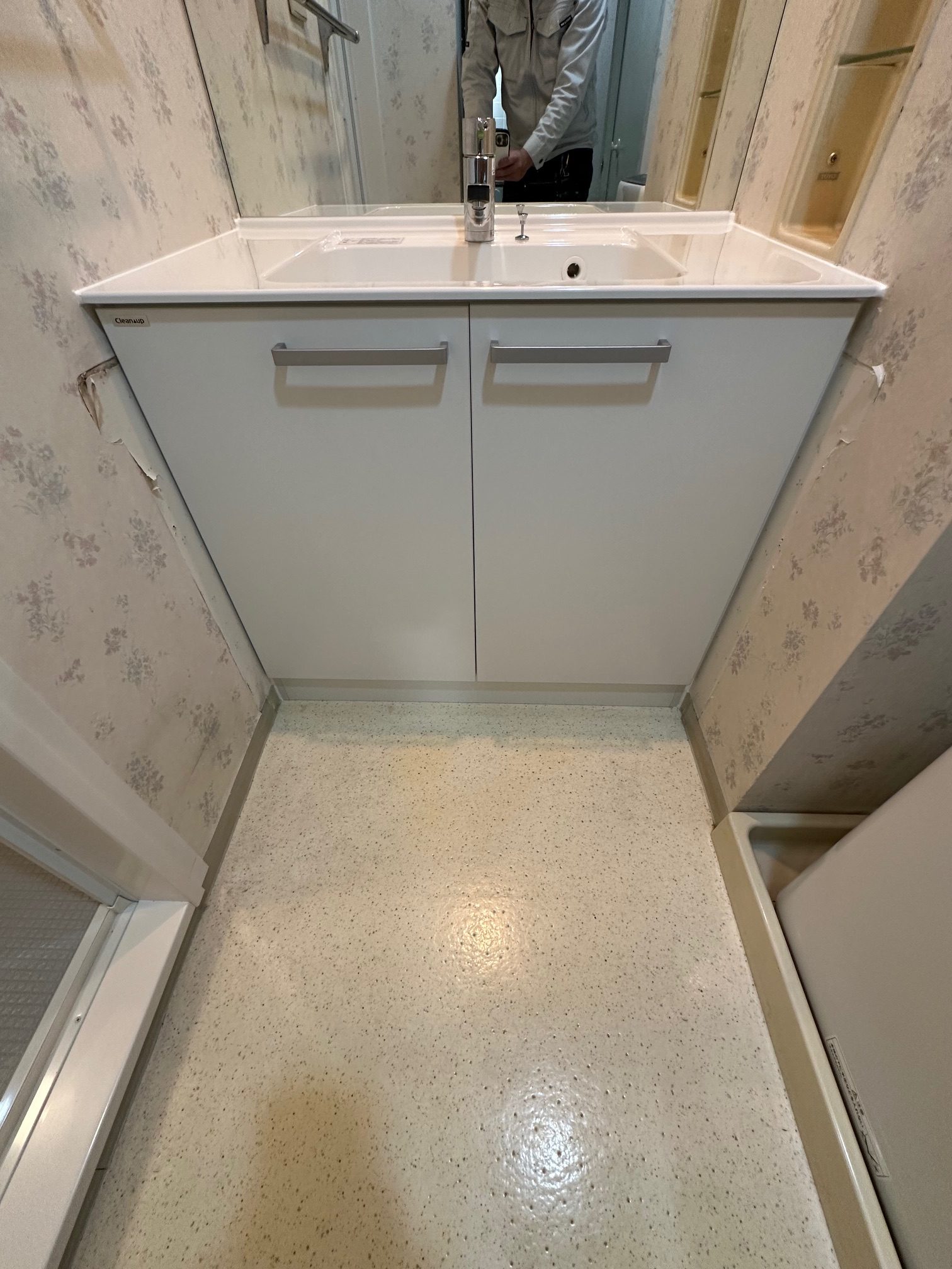 | 工事詳細 | 洗面室リフォーム ・洗面台取り替え ・クロス張り替え ・ソフト巾木貼り替え ・床CF貼り ・タオル掛け交換 ・洗濯給水交換 ・防水パン交換 ・コンセント/スイッチ交換 |